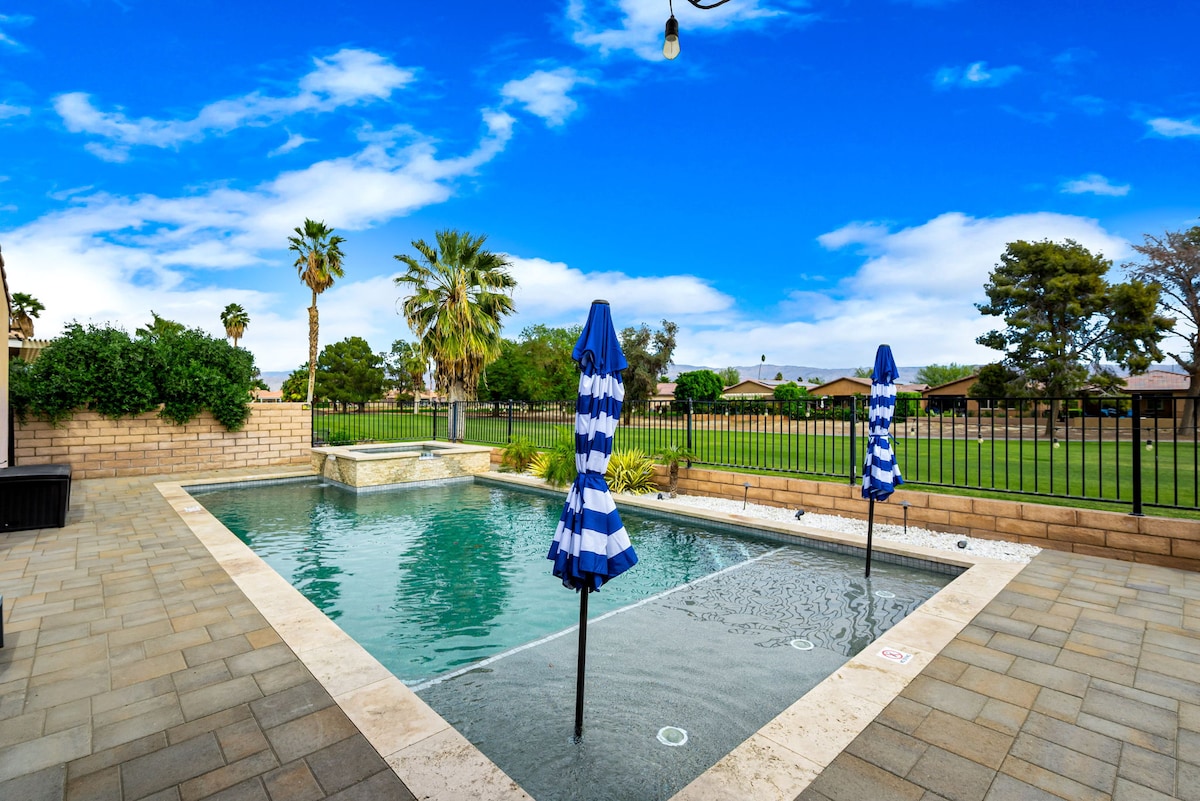 Experience this AMAZING, gated community in Bermuda Dunes! 5-star reviews rave about the HUGE backyard—your PRIVATE RESORT! → Enjoy a plethora of backyard activities, a pool with waterslide and spa, pickleball and volleyball. → Games galore, sand volleyball, and a fire pit for s'mores. → Fully stocked kitchen—cook up a storm! Spacious, clearn, and perfect for groups. QUICK and FRIENDLY host responses! BOOK NOW for an unforgettable stay!