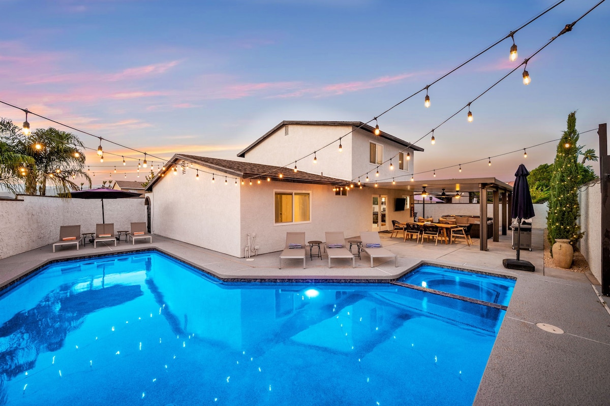 Welcome to Desert Social – your ultimate Vacation Oasis! Perfect for groups of all sizes, this elegant lakeside retreat offers luxury, endless fun, and easy access to festivals, shops, dining, and Palm Springs. Featuring a stunning outdoor area, Saltwater Pool, Spa, Sauna, Game Room, Mini-Golf, Toys, Home Theater, and more, there’s fun for everyone. Hiking - 3 min drive Grocery - 5-10 min drive Golf Courses - 2-7 min drive Elevate Your Stay with Fun and Elegance; Details Below