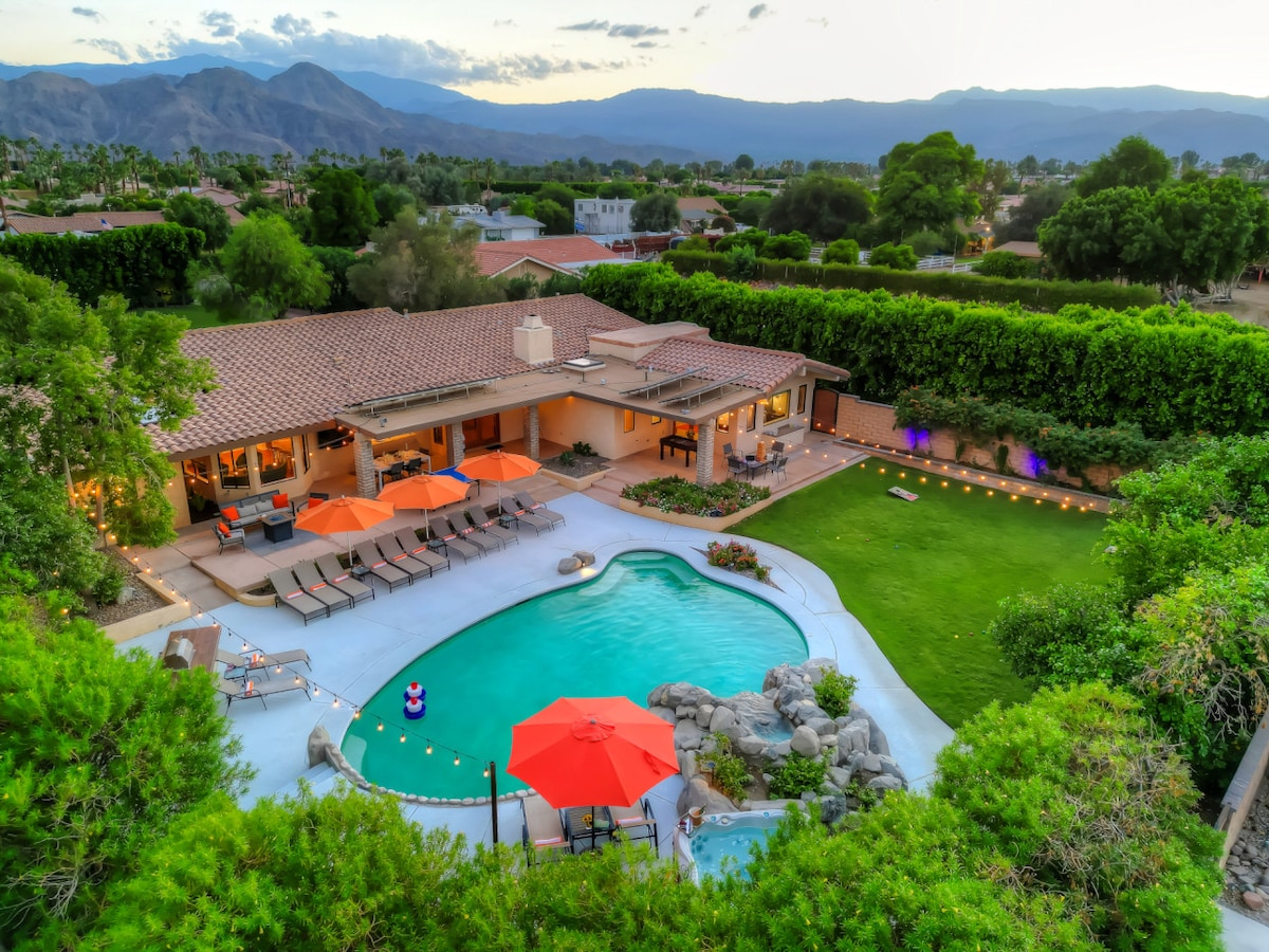 Nestled against the backdrop of the beautiful San Jacinto mountains, our retreat offers a luxury getaway surrounded by palm trees and clear blue skies in the heart of the Coachella Valley. Conveniently located near Palm Springs, Acrisure Arena, Joshua Tree, Indian Wells Tennis Garden, PGA West Stadium Course, El Paseo Shopping District, Agua Caliente Casino, and Empire Polo Club. This sanctuary provides quick and central access to the vast desert wonders and surrounding city experiences.