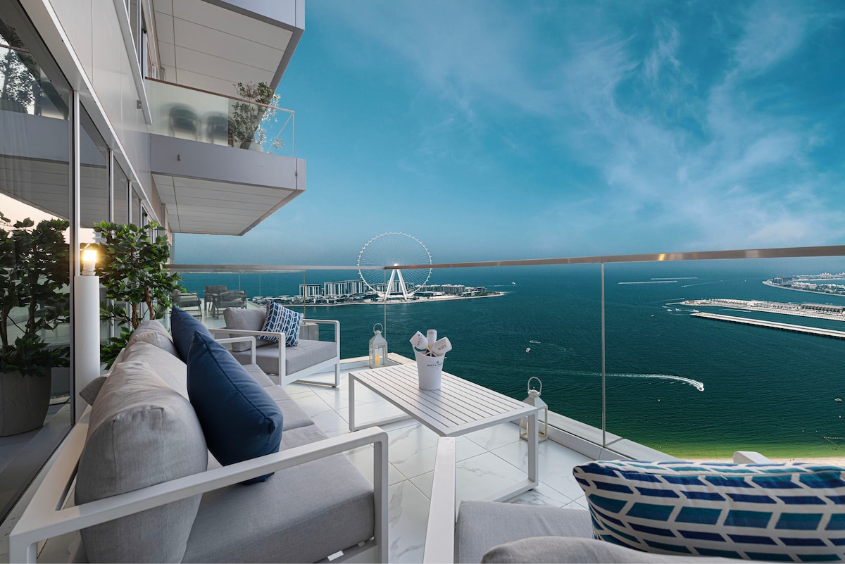 Take in the stunning Sea and Ain (Dubai Eye) views from the comfort of your own Bluewaters Island Apartment & Balcony. This Apartment features elegant furnishings throughout as well as stylish decor & art throughout the apartment. The Apartment is fully equipped with an open plan kitchen and a spacious living area to relax in. The Apartment is a 7 minute walk from JBR and the beach, 2 minutes away from Ain (Dubai Eye) & Madame Tussauds as well as 25 minutes from the Airport.