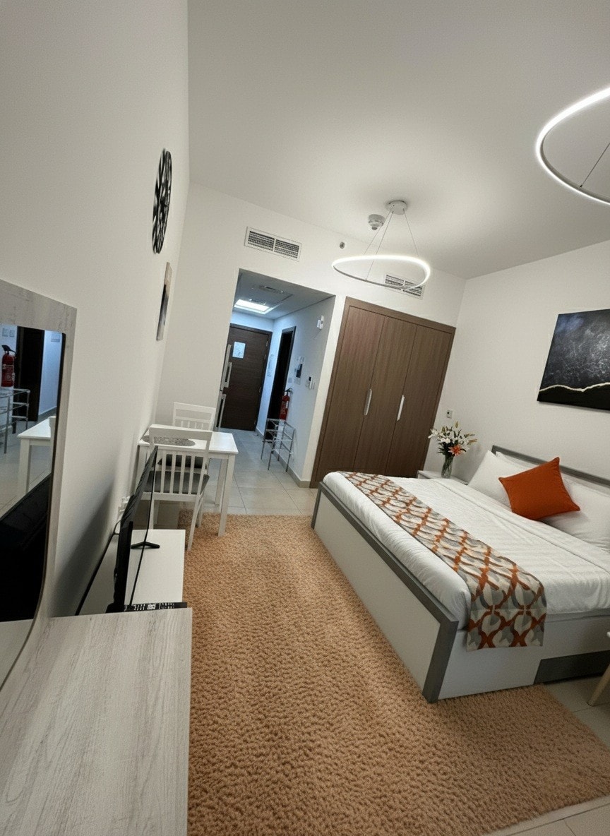 Stay in the heart of Dubai Marina at this stylish studio in iconic Studio One Tower 🌆. Enjoy a bright open space with a king bed, smart TV, fast WiFi 📶, fully equipped kitchen, and a private balcony for relaxed mornings ✨. Cool off in the stunning pool, train at the modern gym 💪, and feel secure with 24/7 security. Just steps from Marina Walk, JBR Beach, cafés, and transport, perfect for work or seaside escapes.