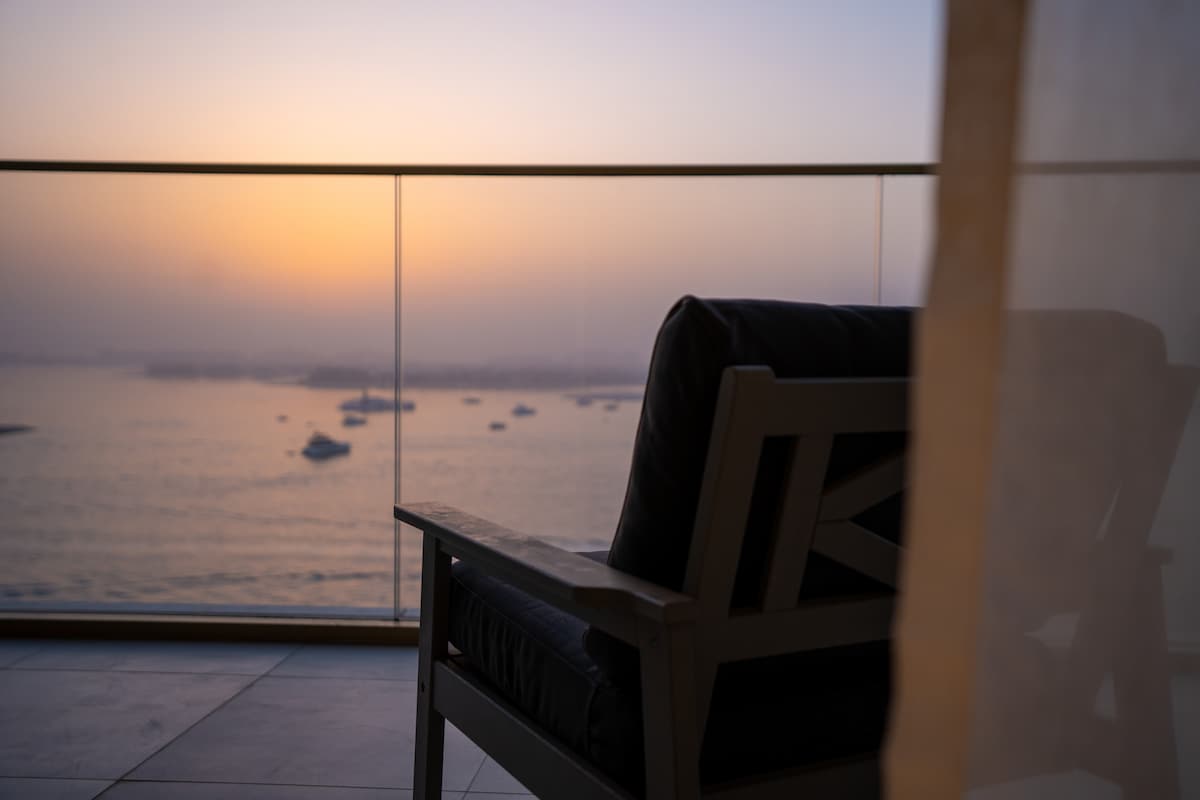Unwind in this unique ocean facing apartment and enjoy views of Dubai and a game of pool. This apartment is an artistic, cozy, spacious 2-bedroom that features a large fully equipped kitchen, billiard and sitting area along with a large balcony, 2 bathrooms, board games and cool lighting! Located in The Palm Jumeriah with easy access, and close proximity to all your favorite spots. This place will leave you feeling warm, happy, fun, and at home. Enjoy!