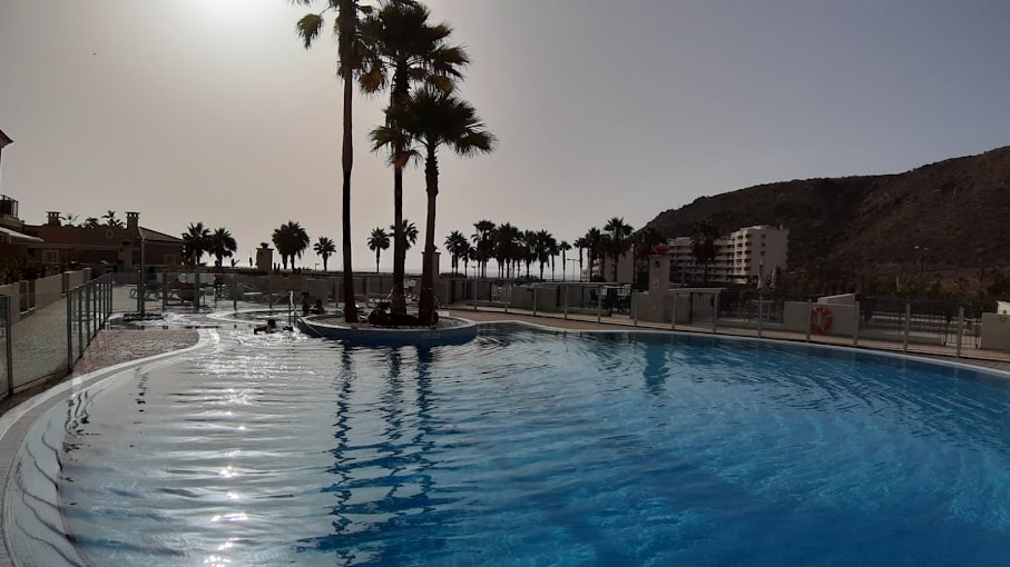 Lujoso apartamento de dos dormitorios, cada uno tiene su propio baño. El complejo fue construido en agosto de 2020. Cada dormitorio tiene una terraza. Habitacion grande y cocina grande con todo lo que necesitas para cocinar. Hay una plaza de aparcamiento privado justo en la casa. La terraza ofrece vistas a la piscina. La piscina está climatizada y el complejo tiene un gimnasio. Lugar ideal para quedarse. Hay un supermercado, una frutería y restaurantes frente a la casa. Palm Mar tiene todo.