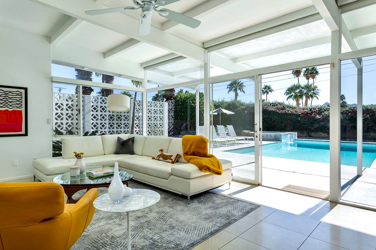 ID#1837 | The Dream Home EXPERIENCE THE MAGIC! INDIVIDUALS or COUPLES seeking LUXURY, MEMORIES, and ROMANCE: Step into Palm Springs’ #1 Airbnb PLUS HOME—a mid-century retreat featured in national publications. Behind bright yellow doors, your private paradise awaits with YOUR FULL-SIZE PRIVATE POOL, heated spa, and lush gardens. Perfect for honeymoons, anniversaries, or a memorable getaway to relax, reconnect, and create lasting memories. Don’t wait—book your unforgettable escape today!