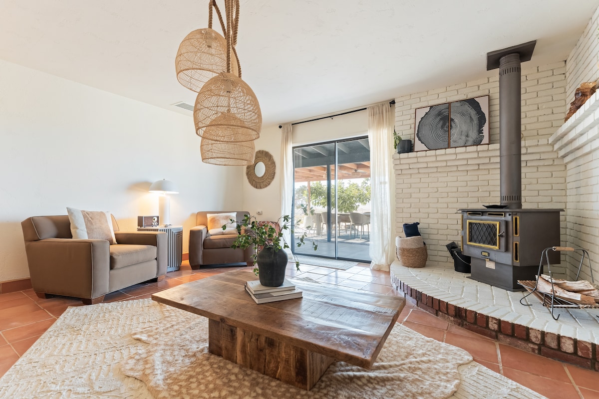 Introducing the upgraded version of our beloved desert retreat, now known as Villa Champagne. With over 420 five-star reviews under its former name, this cherished haven has undergone a transformation to elevate your desert getaway to new heights of luxury and comfort. Nestled on two acres of serene desert landscape and just a short drive from Joshua Tree National Park's west entrance, Villa Champagne offers a space to unwind and connect with nature. Perfect for those seeking a peaceful escape