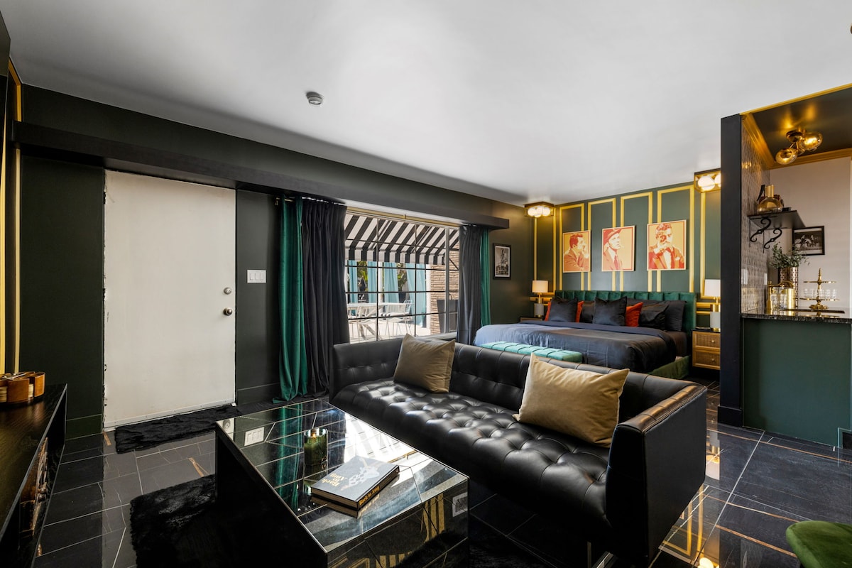 Inspired by the legendary Rat Pack era, this suite exudes the spirit of Frank Sinatra, Dean Martin, and Sammy Davis Jr. Experience the allure of vintage sophistication as you enter a world of classic charm and effortless cool. The Rat Pack Suite invites you to relax in a king-sized bed, surrounded by stylish décor and nostalgic accents. Unwind in the cozy living area, perfect for socializing and entertaining.