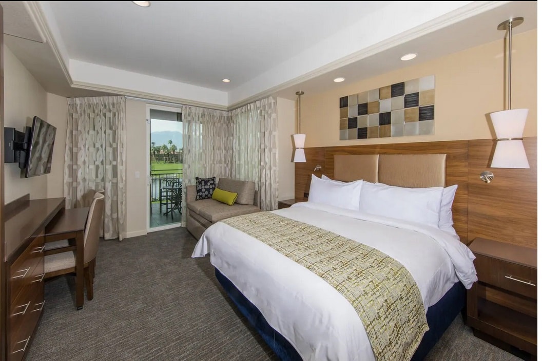I represent a timeshare at Marriott's Desert Springs Villas. I will give your name to the hotel and you check in like a normal guest and studio rooms will be assigned on check in. All amenities are available like a normal guest. PLEASE note there is no cancellation since I use my week once you book. PLEASE read the details below to answer the common questions my guests have. I do respond very very quickly to any questions! All of our guest rooms feature kitchenettes and queen beds.