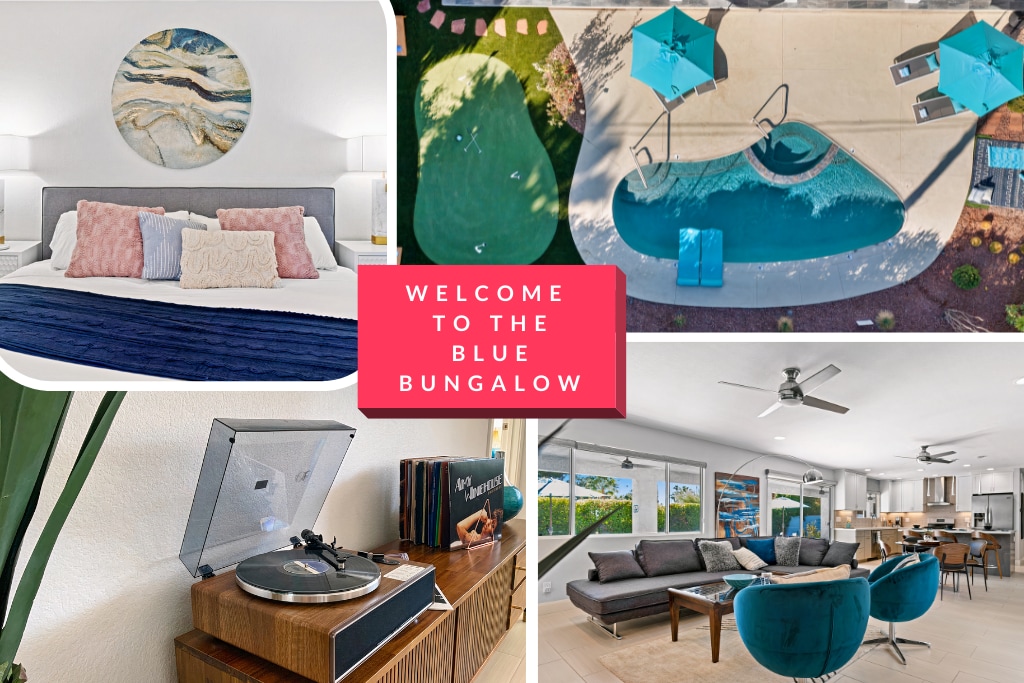 Awesome remodeled mid century home oozing with vacation vibes. Great neighborhood. Boasting a huge resort style back yard. Private new pool + spa. (Bonus - spa heat is included in your nightly rate). Plus toys, outdoor games, yoga mats and blocks, bocci ball court, fire pit lounge, covered outdoor living + dining pavilion, bar with built in BBQ grill. Stunning mountain views. The entire home is well appointed with everything you need to relax. Come play in the sun and gather under the stars