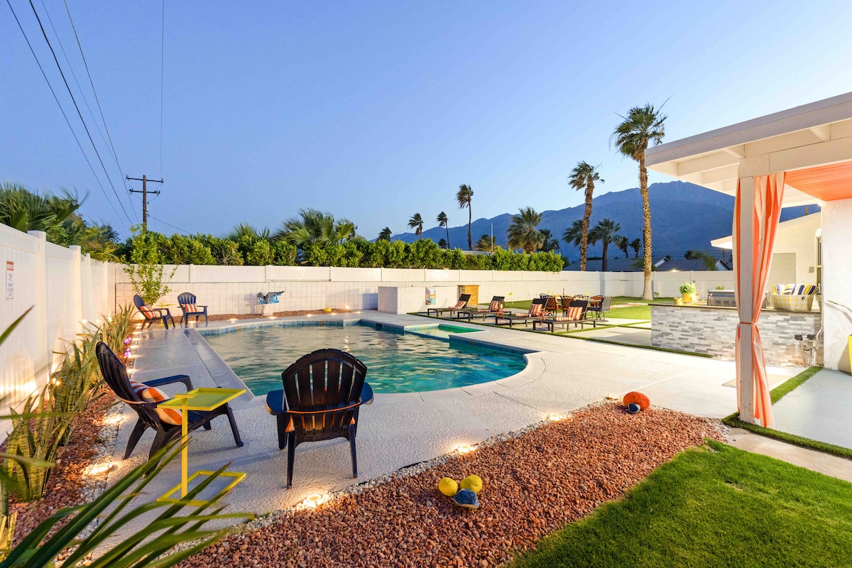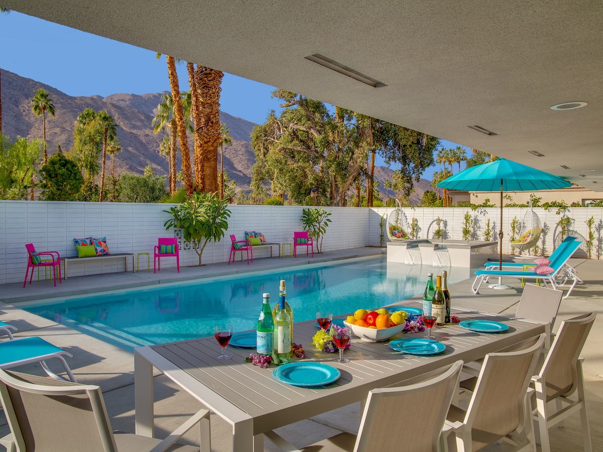 Welcome to Desert Bloom – Palm Springs ID #3575 | TOT Permit #7653 Escape to this stylish mid-century modern gem with a private pool and spa, nestled on a quiet corner lot with breathtaking mountain views. Just 5 minutes from downtown Palm Springs, Desert Bloom offers the perfect blend of relaxation and convenience. Lounge poolside, unwind in the serene backyard, and soak up the desert magic at your dream vacation retreat.