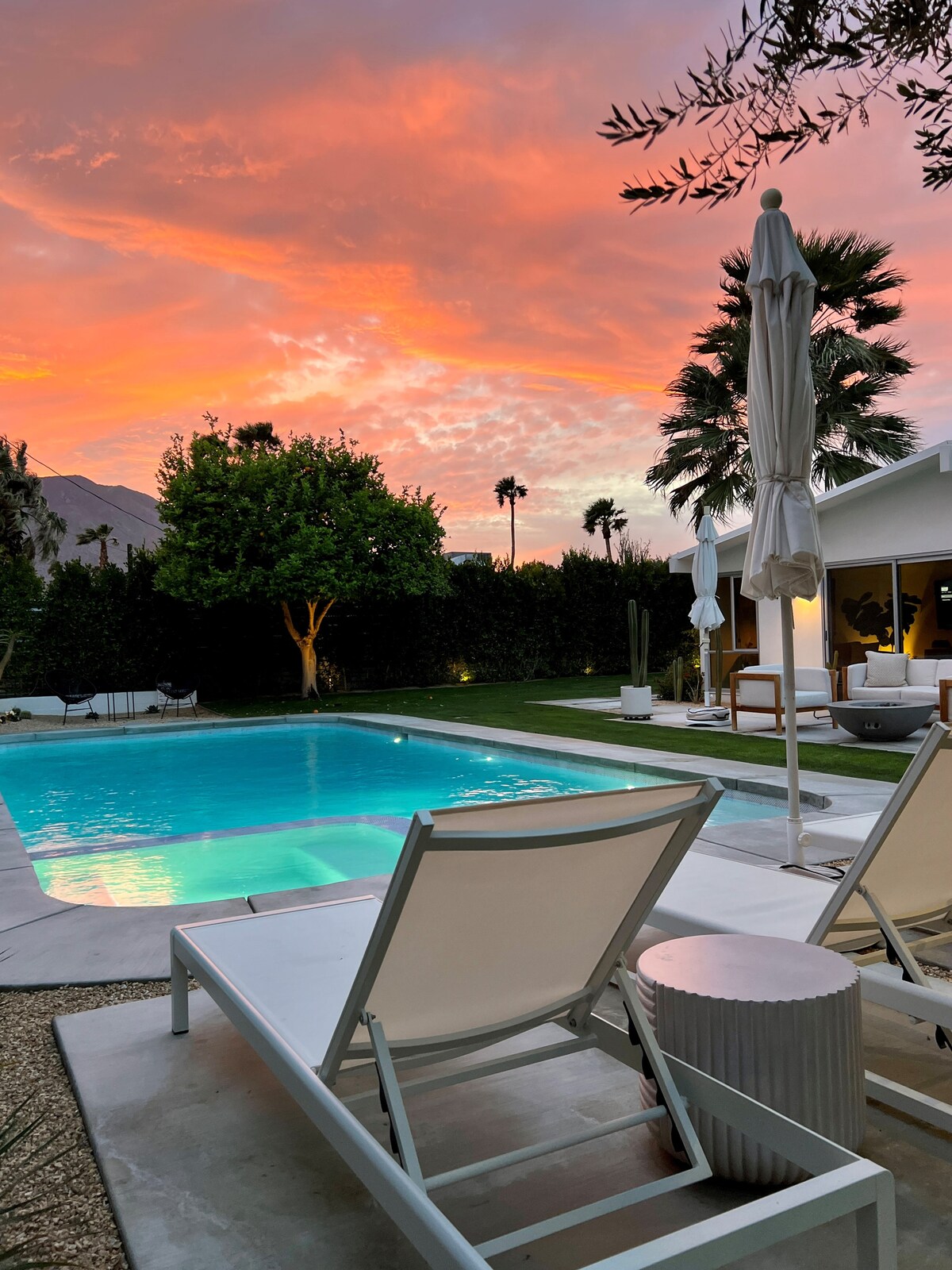 This Private resort style yard and breathtaking mid-century modern interior provide the complete Palm Springs experience! The back yard has just been completely renovated to a fresh clean resort vibe with heated pool and waterfall spa, tanning ledge, fire pit lounge with mountain views, gorgeous outdoor dining in the mountains shadow for sunsets and a glass of wine. The Interior features an open concept, luxury linens, organic toiletries, fireplace and everything you need to live your best life.
