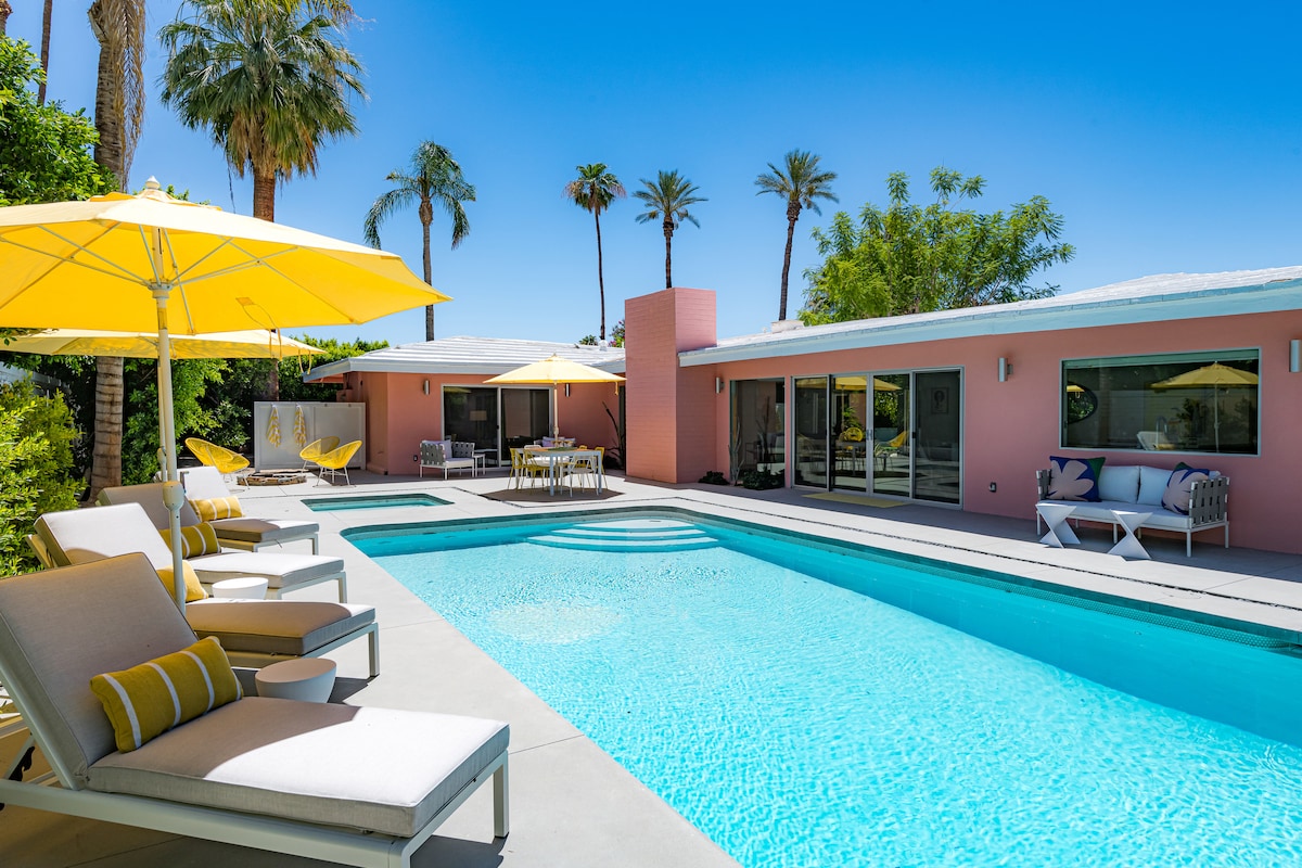 ID#1837 | The Dream Home EXPERIENCE THE MAGIC! INDIVIDUALS or COUPLES seeking LUXURY, MEMORIES, and ROMANCE: Step into Palm Springs’ #1 Airbnb PLUS HOME—a mid-century retreat featured in national publications. Behind bright yellow doors, your private paradise awaits with YOUR FULL-SIZE PRIVATE POOL, heated spa, and lush gardens. Perfect for honeymoons, anniversaries, or a memorable getaway to relax, reconnect, and create lasting memories. Don’t wait—book your unforgettable escape today!