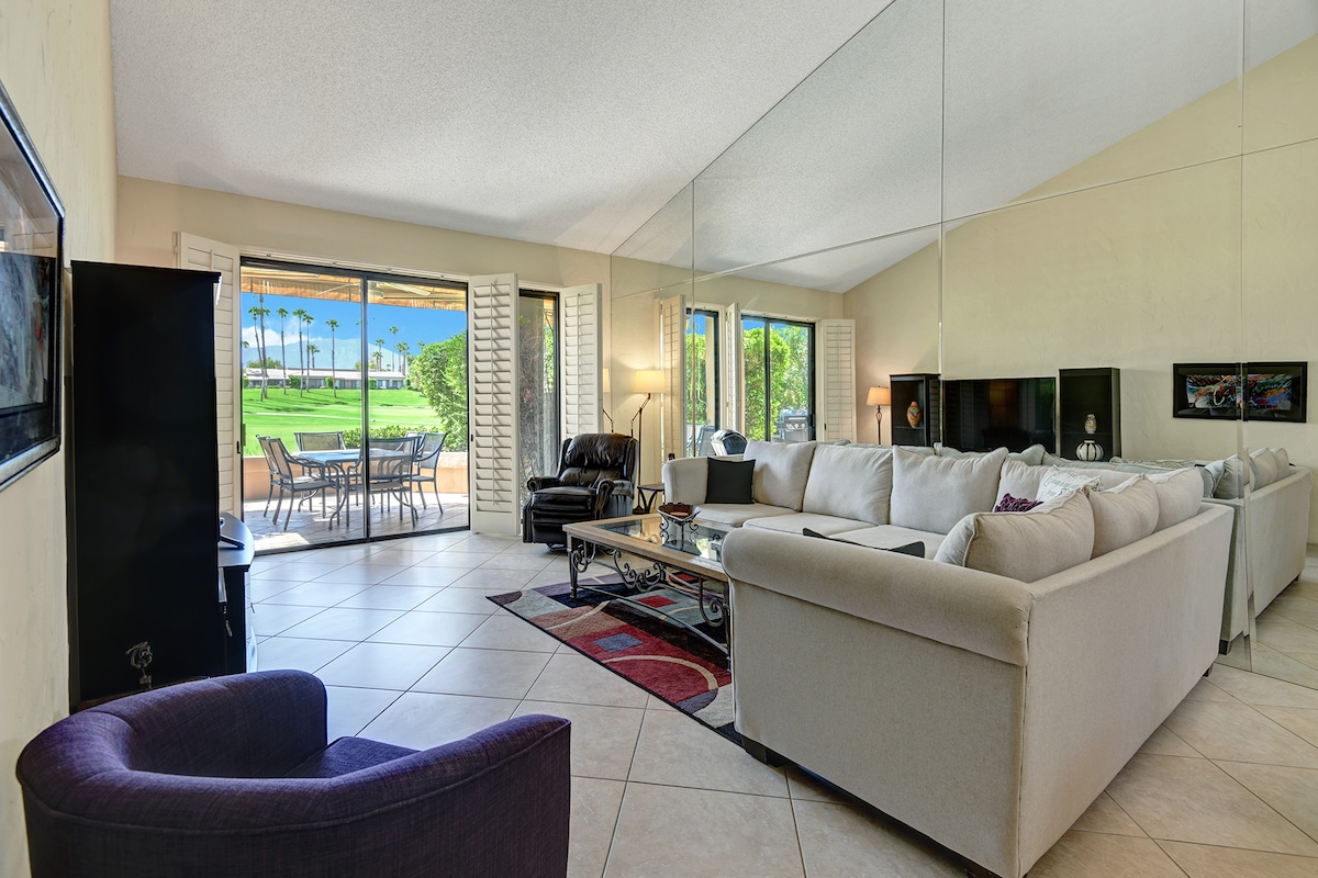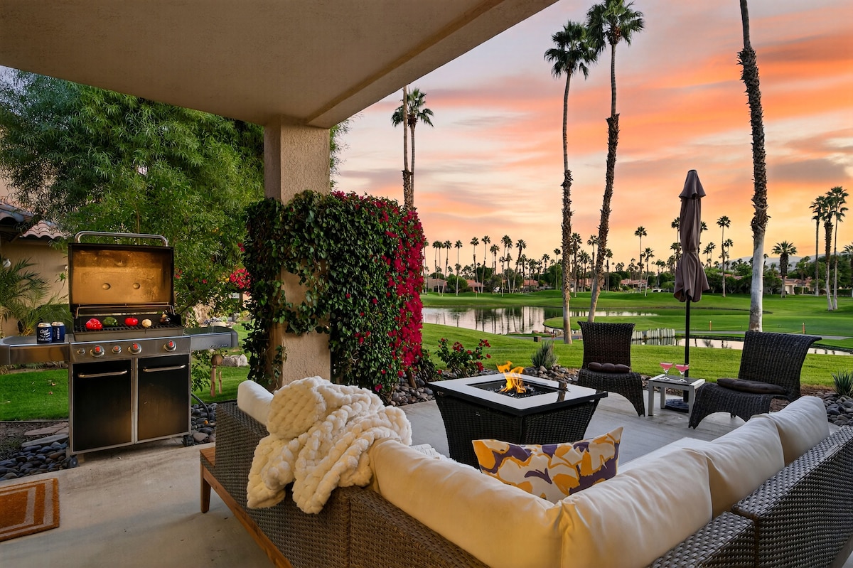 Relax and unwind at this peaceful and centrally-located fully stocked Condo located in the Palm Desert Resort Country Club; a 24 hour security gated community. Single level unit in the "Resorter, AKA." World class pickball and tennis courts. On the 10th fairway of the golf course! Amazing views of the sunset, mountains, golf course and clubhouse. 20 swimming pools and spas on property. Our guests have access to all amenities including Golf, Tennis, Pickleball, Clubhouse and restaurants.