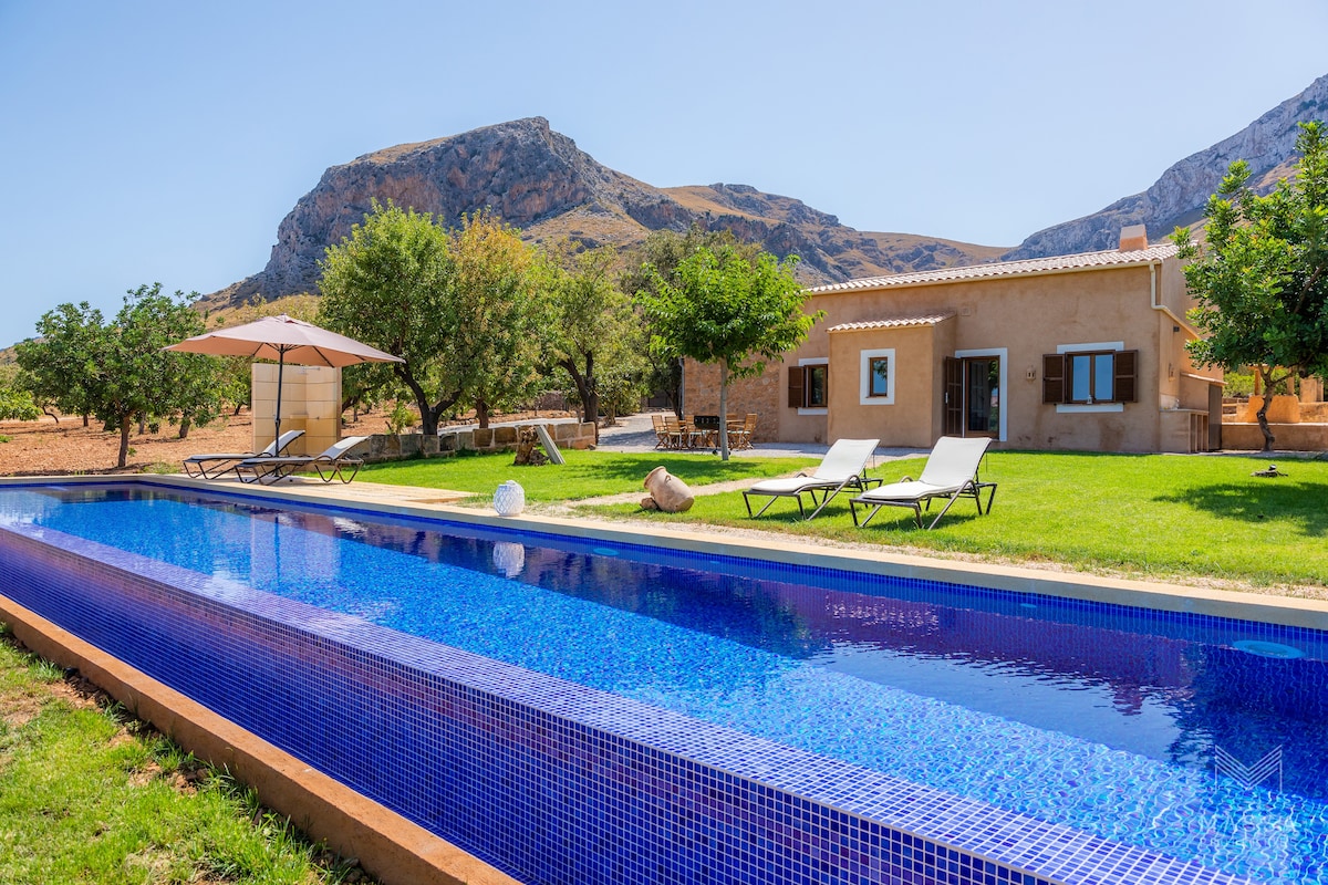 Can Fave is a truly unique property. A private secluded oasis in the middle of the historic and picturesque village of Fornalutx. The house is a renovated 300 century old house converted into a charming cottage style home with many bedrooms and bathrooms. Stunning mountain views, private pool, outdoor kitchen with a grill and sink and a large garden with fruit trees shading the lush lawns.