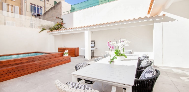 El corazón de Mallorca late en Palma. Tanto mejor que la elegante casa adosada "Miquel Santandreu 40" , donde podrá vivir momentos de relajación a pesar de la animada vida de la ciudad. ¿Le gusta hacer turismo en el casco antiguo o le encantan los extensos recorridos de compras en las tiendas de moda o la diversión de la fiesta de s'Arenal? En la capital de la isla realmente obtienes todo lo que buscas en tu isla soleada. Y, por supuesto, el mar está lo suficientemente cerca como para tocarlo.