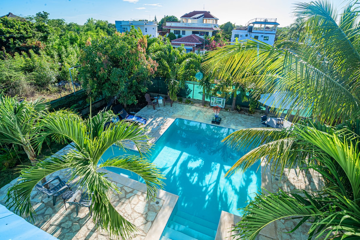 LAS PALMAS 2.una villa con dos picinas una para niños una para aduto 3 habitaciones 2 de 1 cama , ;1 habitacion doble cama sofa cama baño privado cocina équipada ,sala comedor zona BBQ con comedor wifi télévision ségurida dentro una proprieda de 4500 métro con palmas y frutale; aire condicionada , abanicos ;inversore acceso a la playa a 2 minutos de la villa, se pueden alquilar habitaciones mas de 2 camas ,aire nevera baño privado un total adicional 16 personas ;60$ por habitacione la noche ,