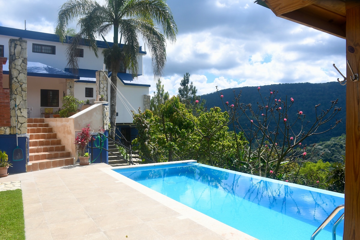 "Peacock's Villa offers a captivating ocean view of Ocoa Bay, showcasing the Dominican Republic's exquisite sunsets. Nestled amid mountains, it's ideally located, 10-20 mins from pristine beaches, Francisco Alberto Caamaño Deñó National Park's trails, and Bani's vibrant nightlife. This enchanting retreat invites you to experience the perfect fusion of natural beauty and leisure, providing an unforgettable escape moments away from diverse attractions."