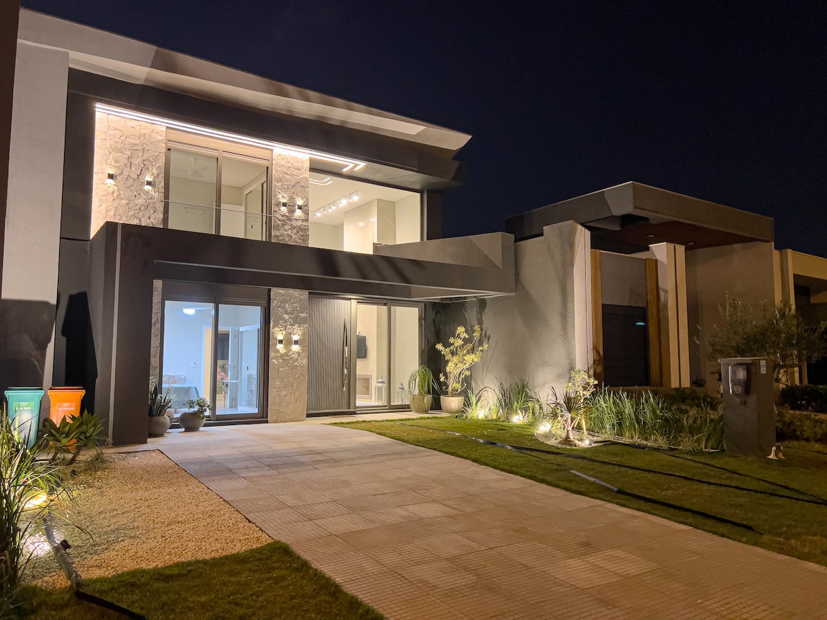 Fantástica nova 5 suítes. Mesa de sinuca. Condomínio Sunset com infra completa. Splits Q/F nas suítes, sala jantar e de estar e cozinha. Smart TV nos quartos, sala e churrasqueira, NET e PPV, WiFi 500MB, 3 bancadas de trabalho nas suítes. Lareira. Pressurizador para banho fenomenal. Possui cooktop, geladeira grande, cervejeira, adega, lava louça, lava e seca roupa, coifa, purificador de água, air fryer, cafeteira, máq. espresso. Copos e taças. Área externa com sofá, poltrona e mesa.