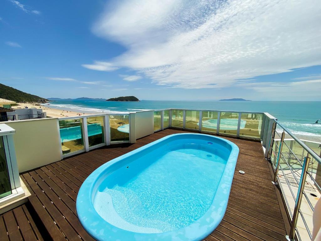 Desfrute da melhor experiência de hospedagem na praia mais charmosa de Santa Catarina! Esta cobertura com 3 Quartos sendo 2 suítes e uma Demi Suite e jacuzzi privativa foi planejada nos mínimos detalhes para oferecer conforto, elegância e uma vista espetacular para o mar. Jacuzzi com vista panorâmica —relaxe e sinta a brisa do mar Duas suítes amplas e uma Demi Suíte e finamente mobiliadas Localização privilegiada: a poucos passos de restaurantes, farmácia e o principal supermercado da praia