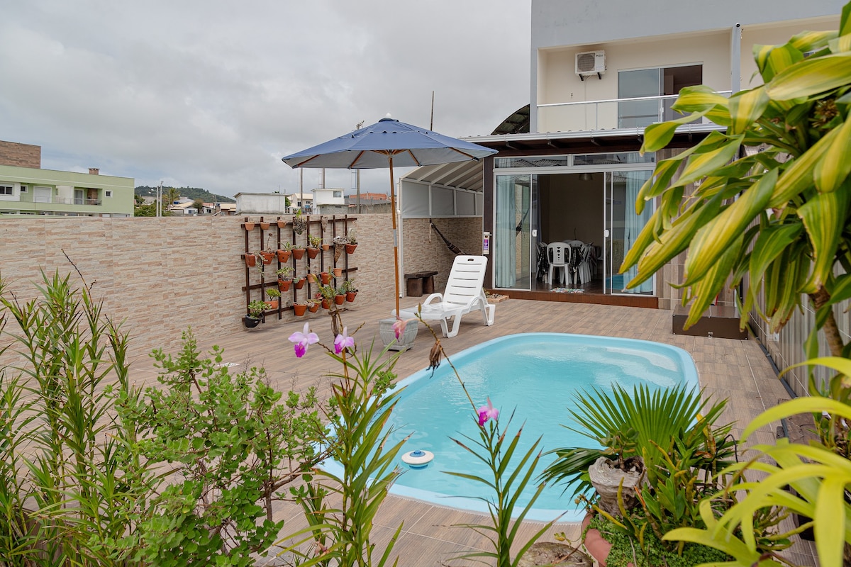 Casa com 205 m de área construída, ótima para família curtir férias com tranquilidade,na praia de Palmas,que é uma das mais lindas de Santa Catarina.Fica à 3 quadras da principal avenida de Palmas.A casa tem jardim lindo ,piscina, casa semi nova, bem cuidada, com tv na sala e quartos,lwi-fi ,Casa toda climatizada.Localizada em uma rua tranquila,Podendo fazer caminhadas, andar de bike,a pé,fazer passeio de lancha,desfrutar de ótimos restaurantes, sorveterias,lanchonetes,hamburgueria e pastelaria