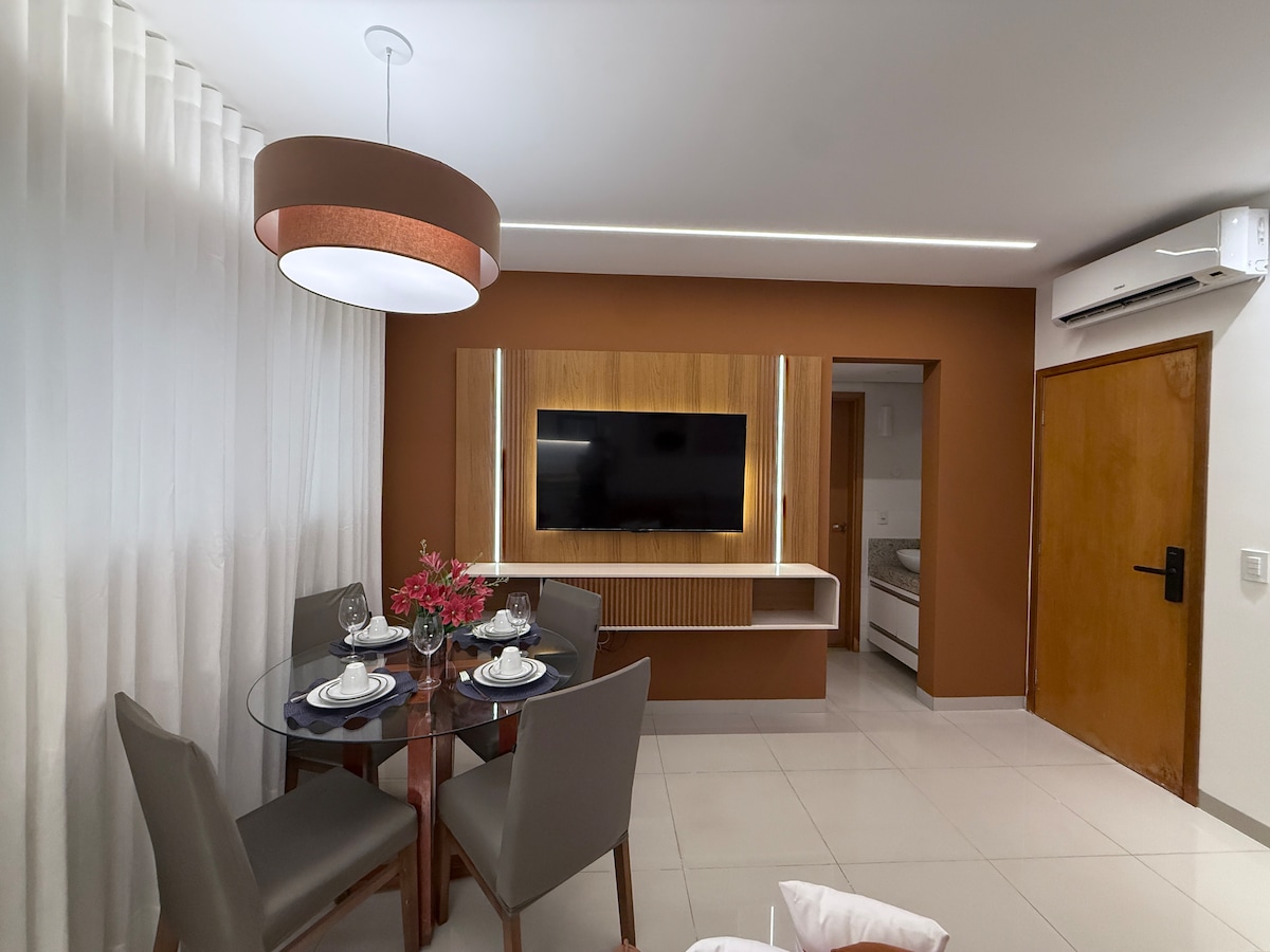 Descanse em um espaço clean, tranquilo e climatizado. Apartamento compacto e completo, ideal para quem busca conforto e praticidade. Localização privilegiada: a 1 km da Av. JK, 6 min do Capim Dourado e a poucos metros da Praia da Graciosa. Check-in remoto para sua comodidade.