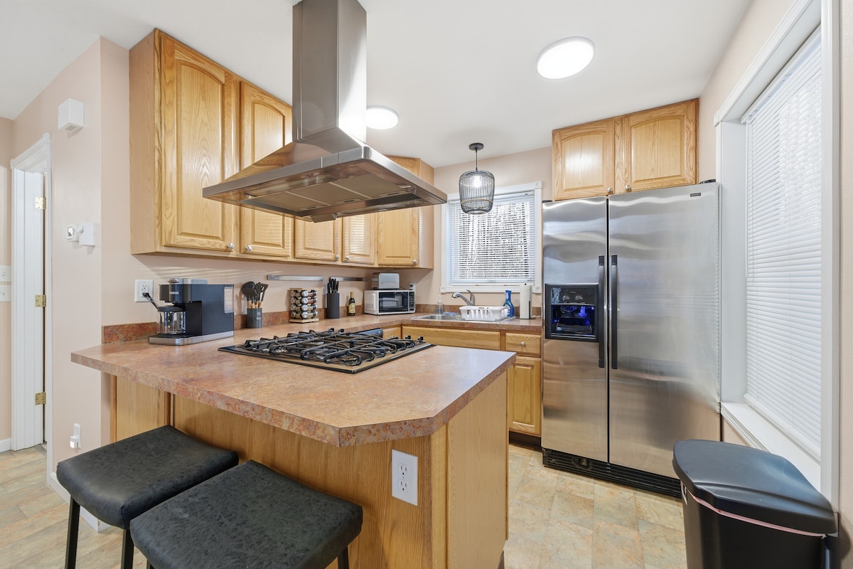 Escape to our breathtaking log cabin mountain retreat in Palmer and experience one of the best views in all of Alaska. This fully furnished cabin offers three bedrooms and 3.5 bathrooms, ensuring ample space for your family. Immerse yourself in the serene beauty of the valley mountain range from the expansive deck, complete with a hot tub featuring soothing jets. Relax and rejuvenate in the custom-built cedar sauna or indulge in the luxury of a steam shower after a day of outdoor adventures.