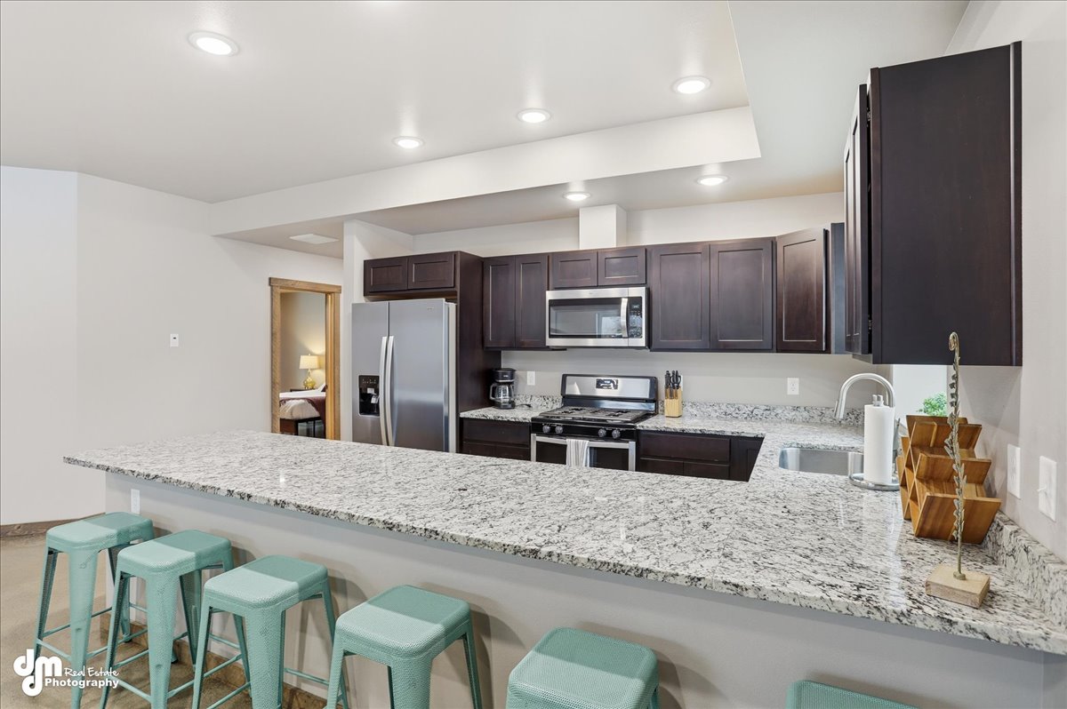Located just 5 minutes from downtown Wasilla, this home is hidden in the middle of it all. Tucked away and secluded on almost an acre of land, you will enjoy a taste of quiet Alaskan solitude where you can sit out on the deck & watch the Northern Lights dance by. Come inside and you will be greeted with a warm fireplace where you can relax after a long day on the slopes or fishing on the lake. Our home features 4 spacious bedrooms and has upgrades throughout, and has been furnished beautifully.