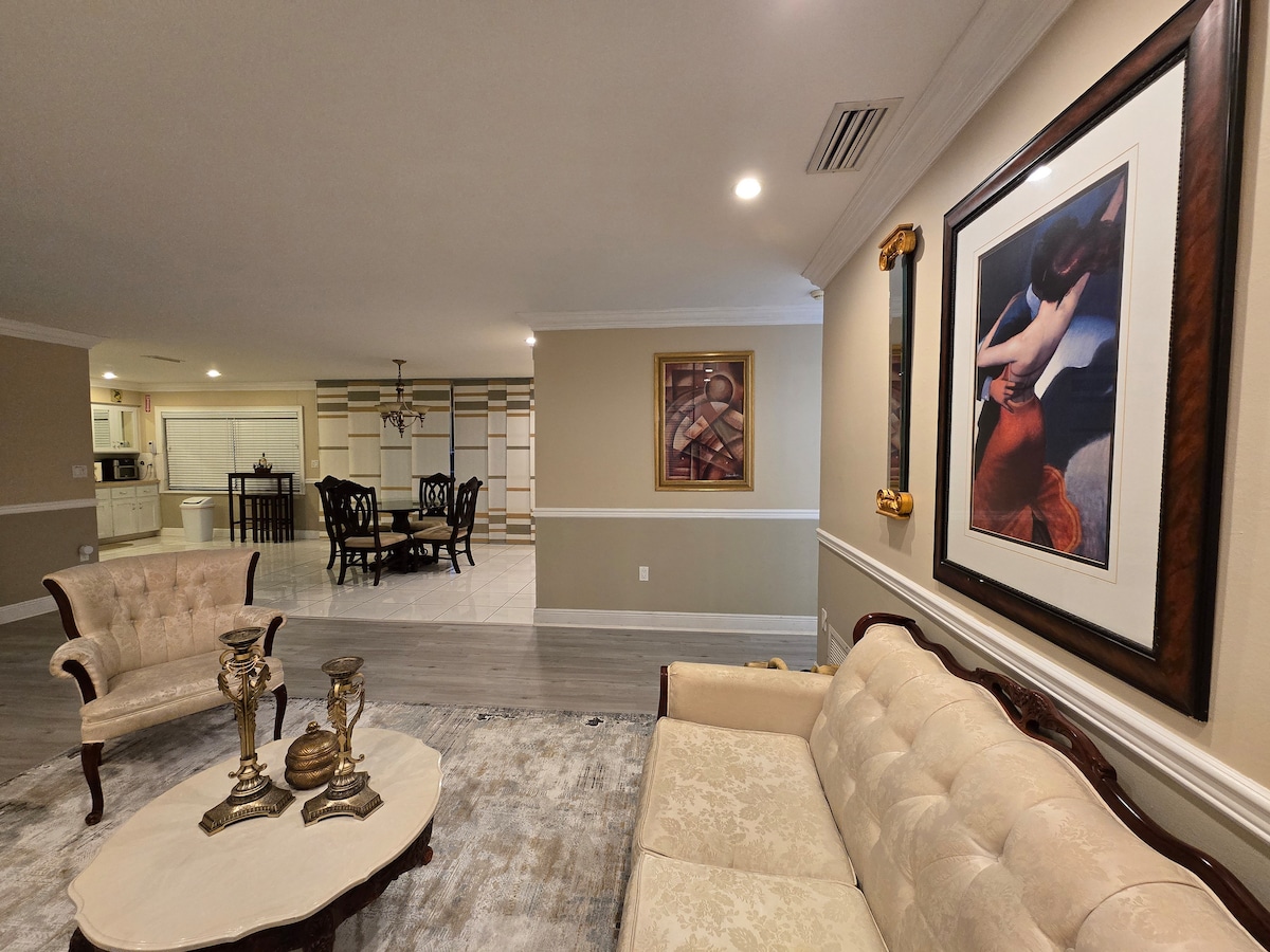 Come and create unforgettable memories at our newly renovated luxury guest house. It boasts a private entrance, separate from the main house, which shares a wall with it. Nestled in a safe neighborhood, it’s conveniently located near everything, including the expressway. Miami Beach is just a 25-minute drive away, the Dolphin Mall is a 10-minute drive, and the Florida Keys are a 45-minute drive. Fiu University is just a 5-minute drive away.Our backyard is shared with us,and a beautiful koi pond!
