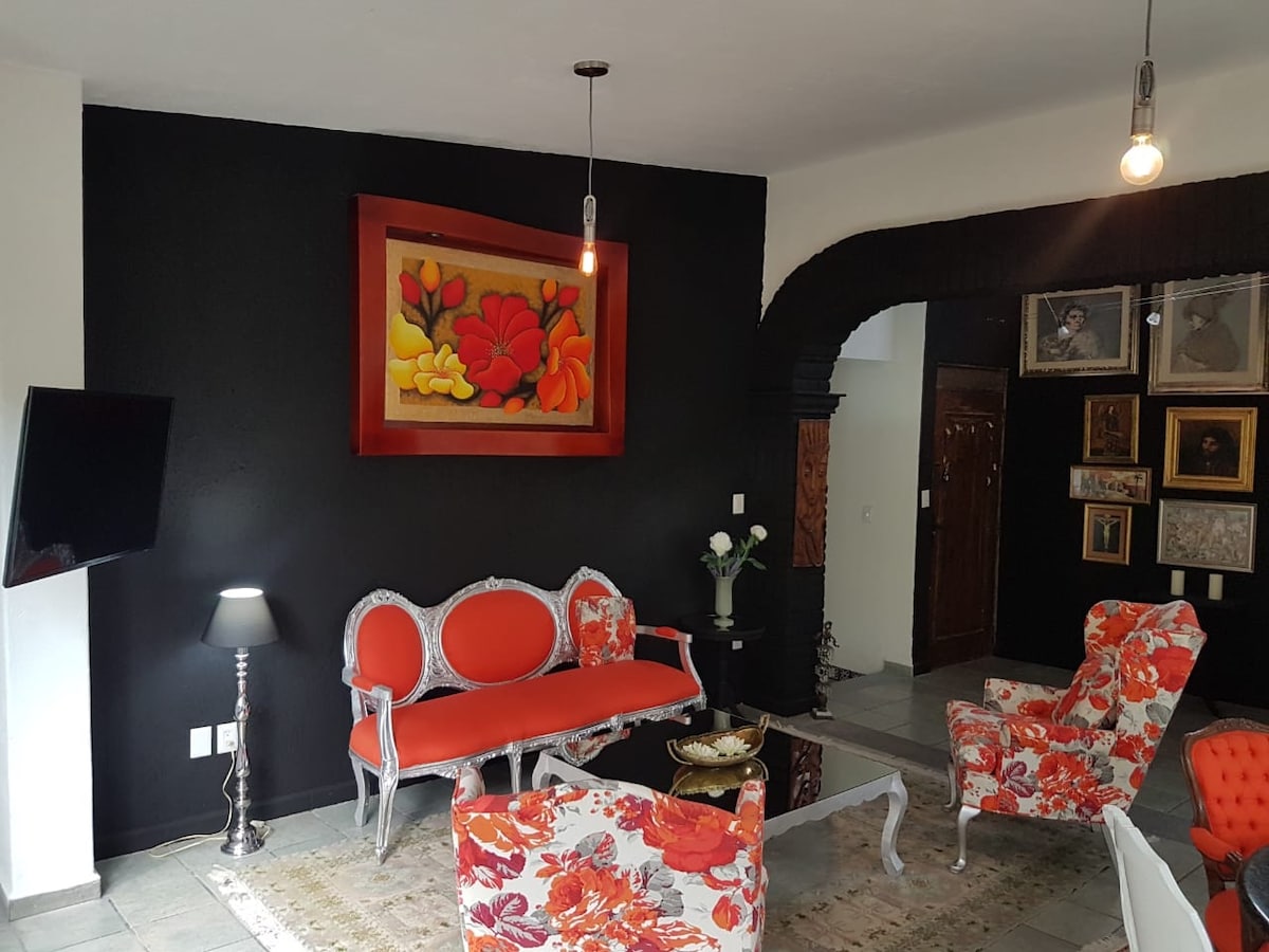 Bello Loft en casa sola remodelado, equilibrado entre estilo colonial y moderno. Ubicado a 6 minutos de el centro en auto y Zócalo de Cuernavaca, a 1minuto de la Autopista Mexico-Acapulco, en un Fraccionamiento seguro y exclusivo con portero, seguridad y estacionamiento propio en la puerta de la estancia. Tiene cúpulas catalanas con vista e iluminación únicas, y varios acabados en madera hechos a mano que harán de tu estancia una experiencia inolvidable. Climatizado y equipado para tu comodidad.