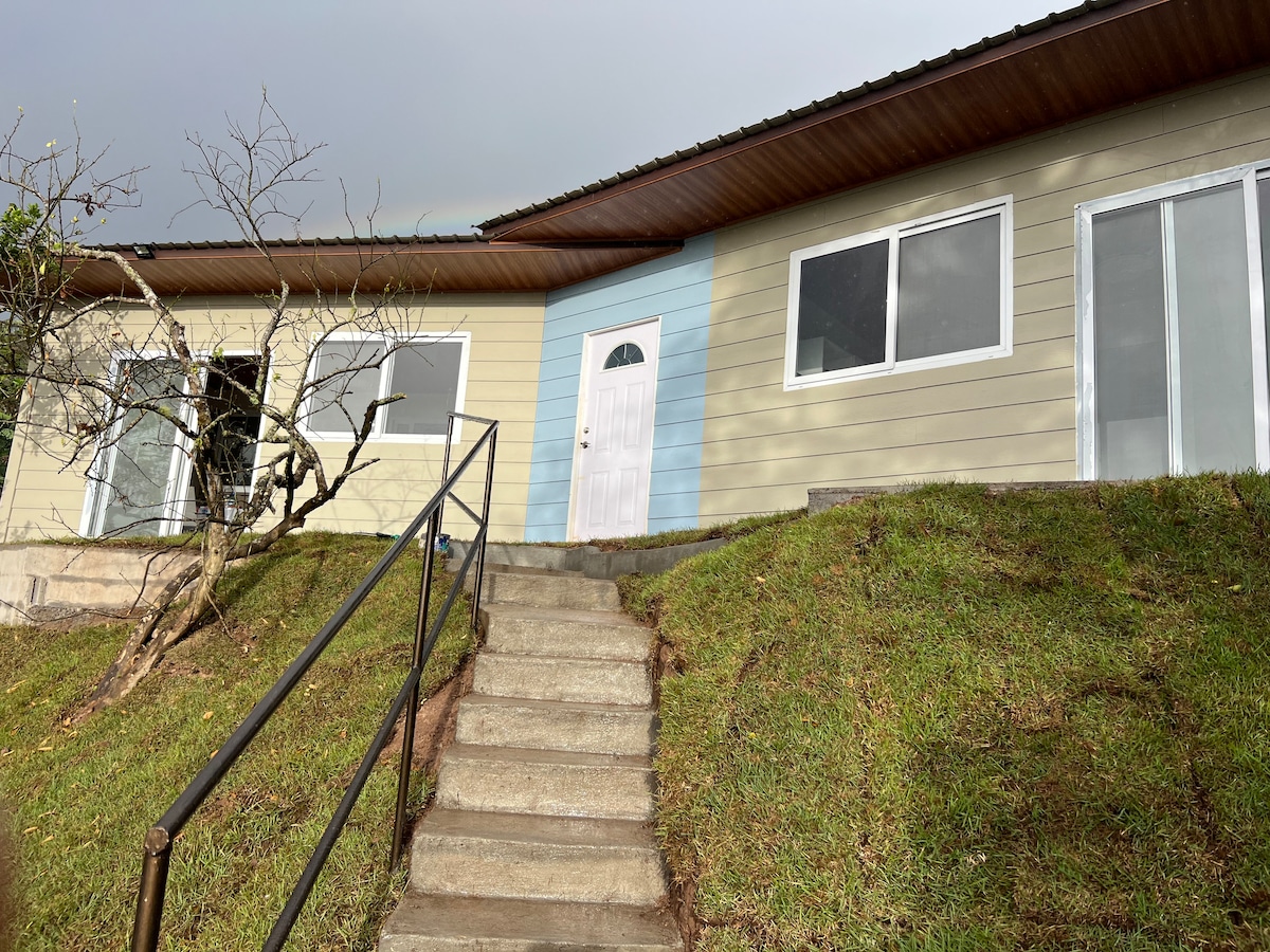 Una cabaña pequeña con vista a las montañas para compartir con quienes más quieres ⛰️. Sin lujos, pero con todo lo necesario para descansar, compartir y sentirse como en casa✨ •Ubicación: A 5 minutos en carro, al Corazón de Boquete ❤️🚗 Ofrecemos: • 2 habitaciones con camas tamaño full • 1 cama tamaño queen en la sala #2 (área abierta) •Estacionamiento al aire libre •1 Baño en planta baja •Cocina equipada •TV de 65” •Wi-Fi •Trampolín •Terraza con BBQ a gas y leña •Amplio Jardín (No cercado)