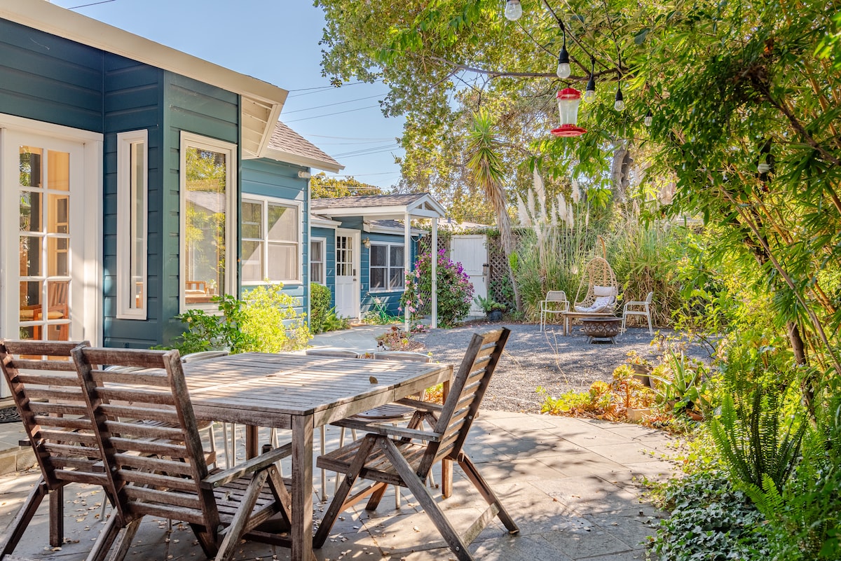 Perfectly located spacious designer home in the heart of Palo Alto. We are 2-5 blocks from major investors, Stanford, Cal Train, Whole Foods, restaurants, and downtown University Ave. Enjoy space to relax/eat/work inside and outdoors in our garden! Rest well on a full size bed with a private bath! Please note, the backyard is shared with other airBnB guests staying in the main house.
