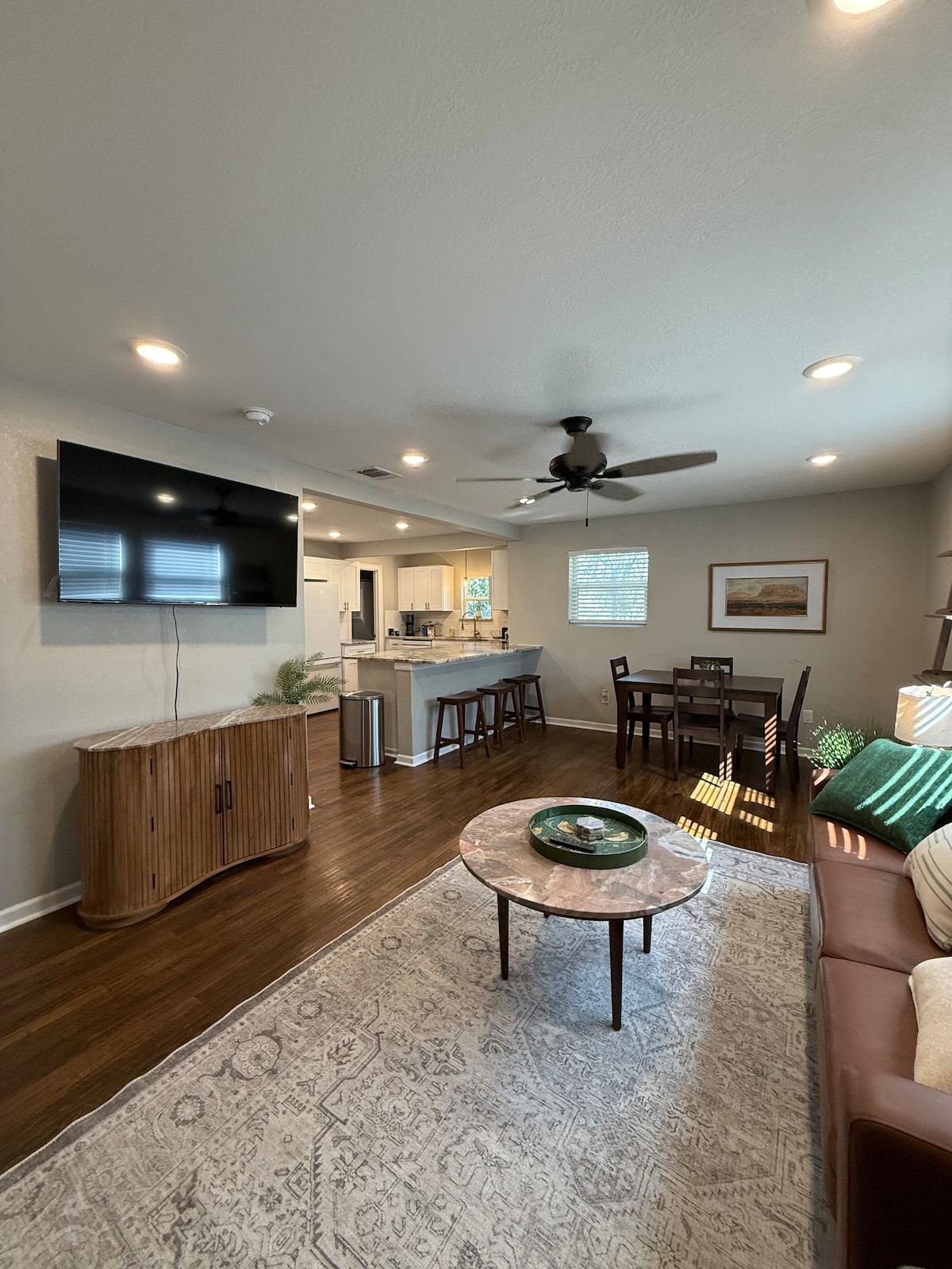 You will be so close to everything at this charming home right here in downtown Mineral Wells, TX! This is the first residential street off of downtown, so you can walk to everything: shopping, restaurants, Baker Hotel, Rickhouse Brewing, Crazy Water Hotel, Crazy Water company and more. This whole home retains its character from being built a century ago. Original hardwood floors and charm with 2 king beds, 2 bathrooms, 3 smart TVs, daybed, full kitchen, wifi, porch and plenty of room to relax.
