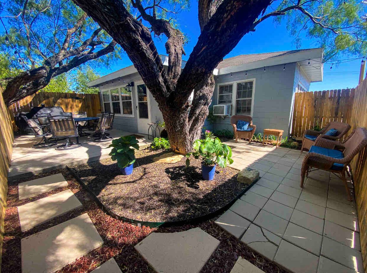 NOT a "tiny house", or dorm room with shared bath, one of the best values in MW! Ideal location 1/2 mile outside city limits. Fast access to downtown, only 1 light, no red lights to shopping. 2 comfortable, attractively updated bedrooms w/ desks & closets. 3 Roku TV's w/ Utube TV, commercial free Utube Premium, fast wifi. Full bath, full kitchen with a real range/oven, breakfast area, icemaker, laundry. Parking for just about anything. Quiet, unspoiled night sky - fabulous! Long term welcome.