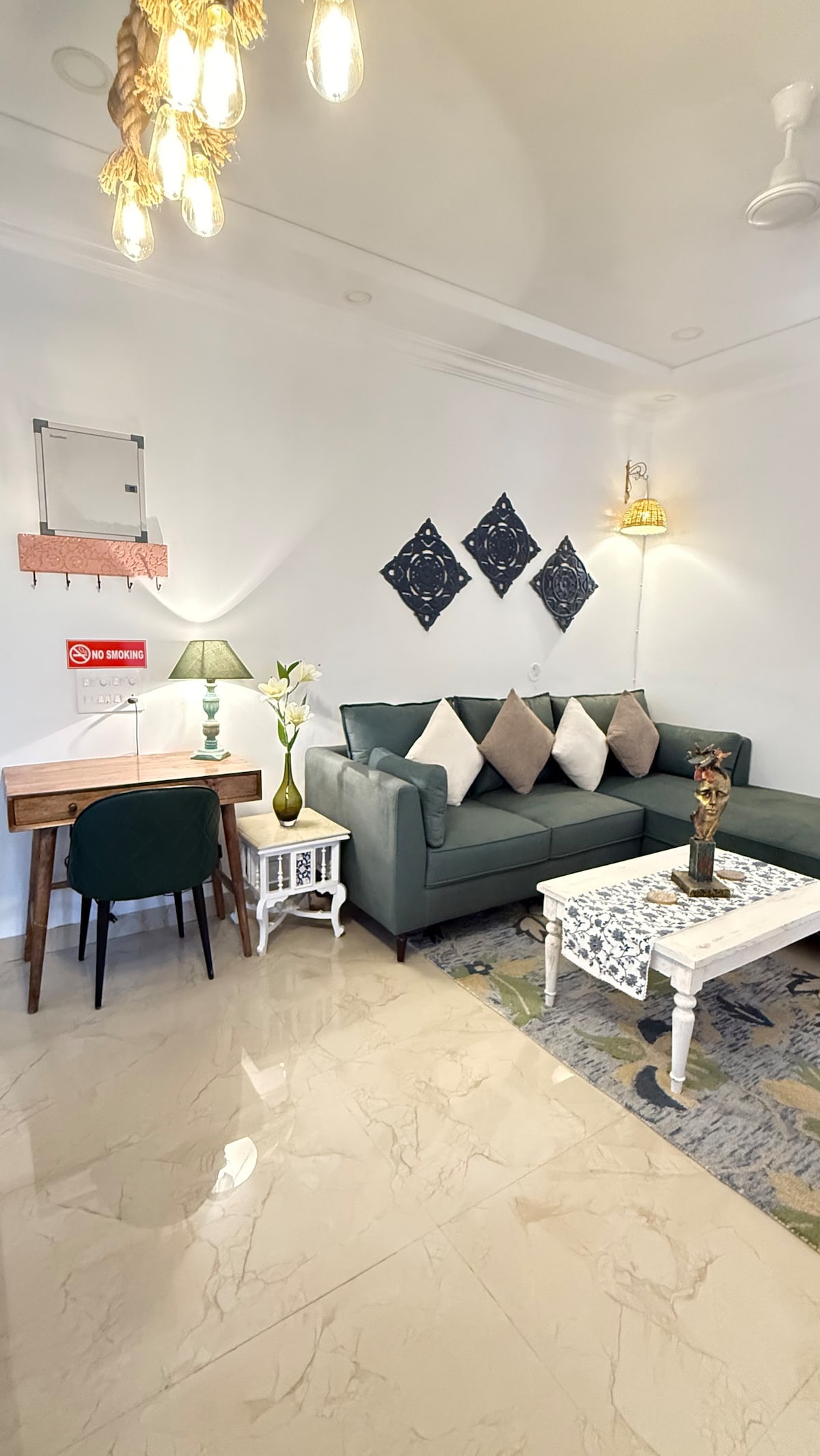 ◆ Cozy furnished AC apartment near famous Palolem beach in South Goa ◆ Ideal remote work setup: stable internet with power back up, office chair, and study desk ◆ Short walk or quick drive to Palolem, Patnem, Rajbag, and Galgibag beaches (5-15 mins) ◆ Mediterranean-inspired luxury interiors ◆ Round-the-clock security in gated housing community ◆ Well-equipped kitchen: 3-burner gas stove, water purifier, washing machine ◆ Canacona Railway and Bus stations a mere 300 meter away.