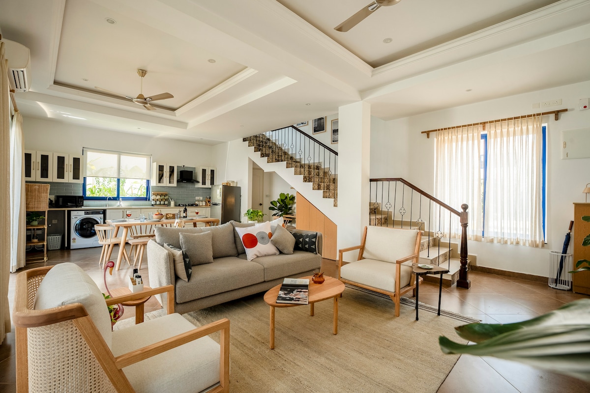 An newly renovated, minimalistic interiors home. The common areas are spacious for a group gathering. Enter into the oasis of calm and serene, the surrounds are lush green with superb accessibility to supermarkets, beaches, and restaurants. Work-cation or a vacation, we have a fully functional WIFI connection to suit your needs. We have a well equipped kitchen to experiment with your cooking abilities. Well within the range of food delivery services, the nearest beach just 10 mins walk away.