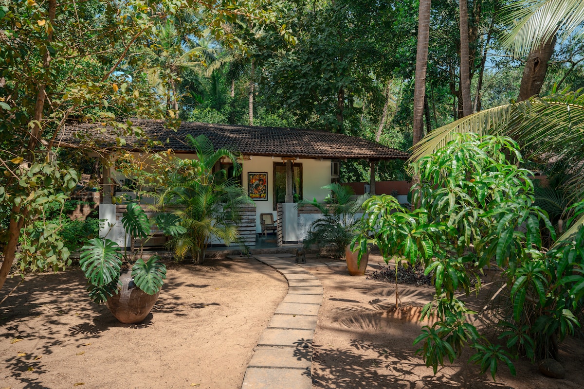 A quiet, nature-wrapped cottage retreat tucked away on a peaceful village road just 3 km from Majorda Beach. Welcome to Oma Koti Cottage, a peaceful one-bedroom cottage tucked away on a large, tree-filled property. Surrounded by coconut, chikoo, guava, and mango trees, this cozy hideaway offers complete tranquility, fresh air, and the feeling of living in your own private forest. Perfect for 2 guests, the cottage combines simplicity, comfort, and lots of outdoor space.