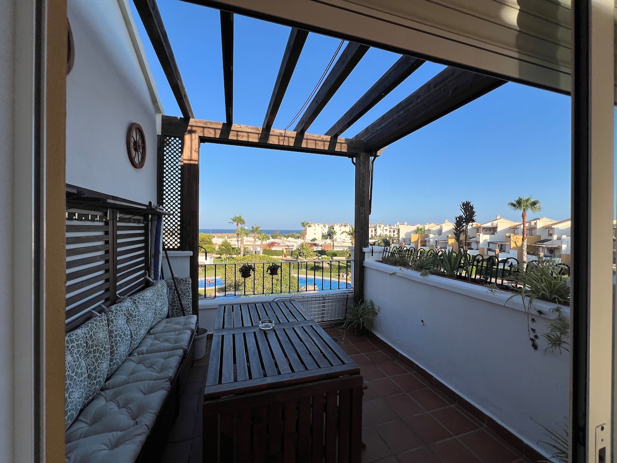 Ático amplío y luminoso, con vistas al mar. Situado a 1 km de la playa. En su terraza podrás disfrutar de desayunos y atardeceres espectaculares con vistas a Mojacar y a la Sierra de Cabrera. El piso es moderno y muy cómodo. Con dos baños, dos habitaciones, amplia cocina y salón luminoso. Dispone de ascensor y plaza de parking. La urbanización está equipada con dos piscinas exteriores, una cubierta, jardines y pista de pádel. Ideal para disfrutar de unos días de descanso. NRR: VUT/AL/11561