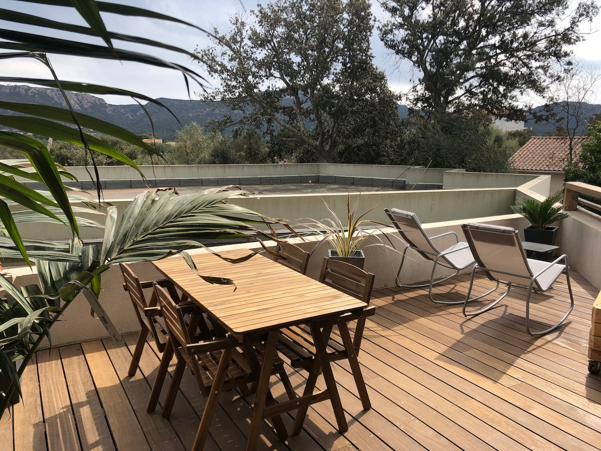 Il est mis à votre disposition un appart de 36 M2 et une terrasse de 15 M2 en rez-de-chaussée mitoyen avec un autre appart séparé par un mur l' accès direct à la crique se trouve à 3 M de la terrasse par un escalier. Il y a un climatiseur réversible pour un réel confort été comme hiver. Appartement fonctionnel (machine à laver le linge, télévision, wifi etc..) linge de maison fourni une place de parking prévu devant la maison De mai au mois d octobre les locations se font du samedi au samedi.