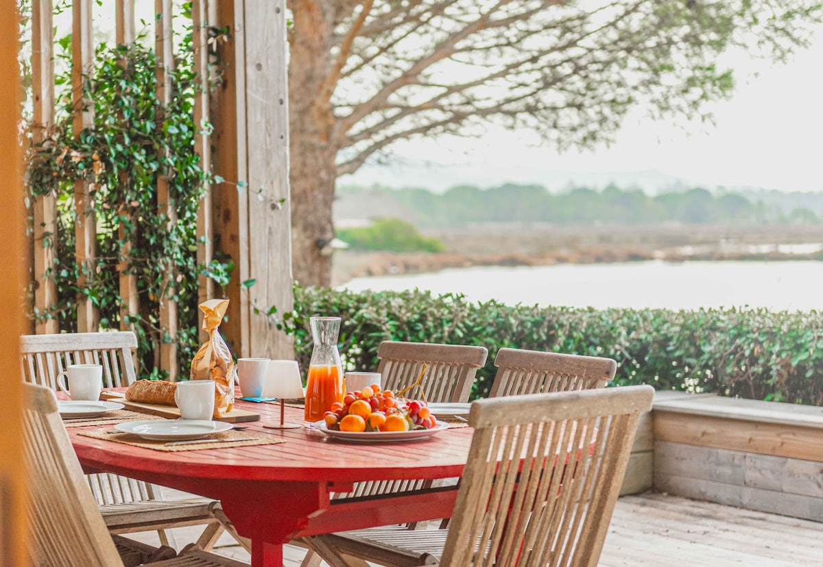 Ce studio, à 10 kms de Porto Vecchio, est dans un petit coin de paradis, les « pieds dans l’eau » dans le domaine privé d’Olmuccio. Une vue incroyable entre mer et montagnes s’offre à vous . Refait à neuf, il dispose de tout le confort moderne : climatisation, smart tv, wifi.. Grace aux 2 kitchenettes extérieure et intérieure toutes équipées vous profiterez par tous les temps de cette incroyable vue. Installez vous sur une des terrasses et admirez la mosaïque des couleurs du ciel et de la mer.