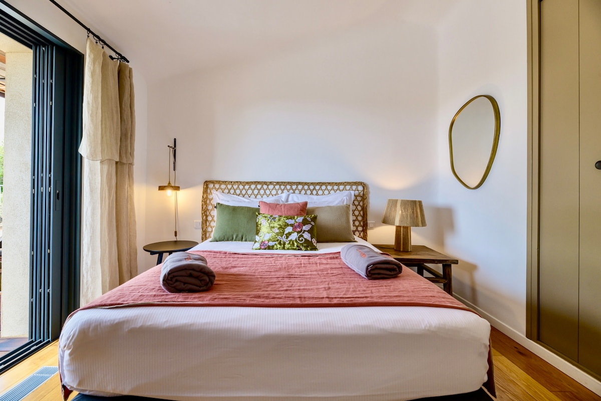 la Kasa Rosa, Villa d’exception en Corse – Vue mer et maquis À quelques pas des plages de Palombaggia et Carataggio, notre villa offre 9 couchages, une vue imprenable sur la mer et le maquis, une grande terrasse, une piscine chauffée de 40 m², un espace détente avec cuisine d’été et bains de soleil. À 10 km de Porto-Vecchio et Santa Giulia, profitez de randonnées, activités nautiques, restaurants réputés, balades à cheval sur la plage et marchés locaux aux saveurs corses.