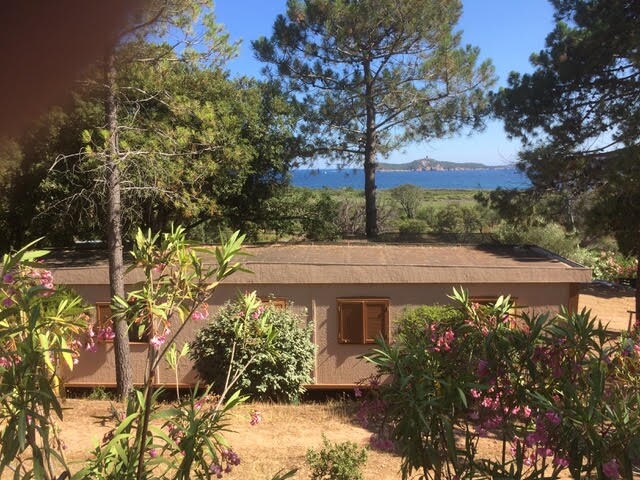 propriété privée à 5 mn de la plage de Maora-beach, et du golf de Santa Manza, 5 mn en voiture du centre-ville de Bonifacio, 10 mn en voiture du lagon de Piantarella, 25 mn des plages de Palombaggia et Santa Giulia et 20 mn de l'aéroport de Figari, le domaine est fermé et sécurisé, entourer de verdure, endroit très calme et reposant. avec deux chambres lits en 140, salle de bain , wc indépendant, coin cuisine, une climatisation, lave linge à l'extérieur, terrasse couverte avec une plancha.
