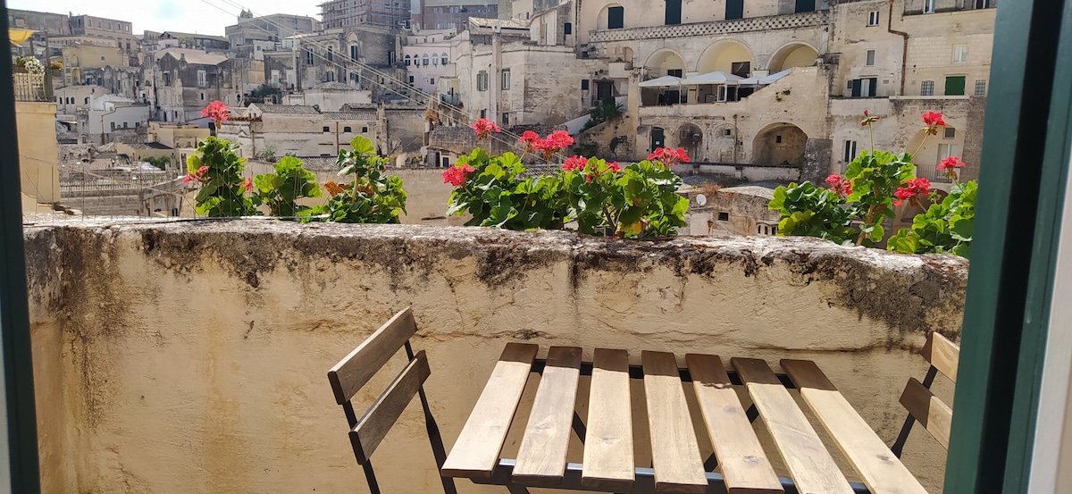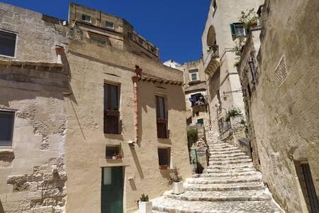 Posta in pieno centro e nei rioni Sassi di Matera, questa abitazione del 1800 conserva la struttura originaria del fabbricato ma è dotata di tutti i comfort moderni e di aria condizionata. E' piena di luce e offre una fantastica vista sui Sassi godibile dal caratteristico balcone dove poter cenare o fare colazione. Sono disponibili a pochi minuti a piedi parcheggi su strada sia gratuiti che a pagamento e parcheggi custoditi a pagamento che per l'intera giornata costano da 10 € a 25 €.