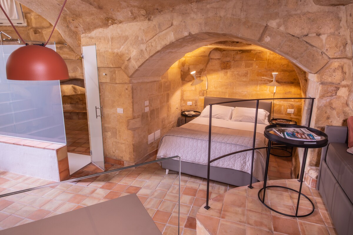 Welcome to the heart of Matera, where luxury and authenticity merge in a unique Loft, carved directly into the millennia-old tufa stone. In an 1800s palace, the Loft becomes part of the city's architectural history, offering not only modern luxury but also an atmosphere steeped in history – a blend of the palace's ancient charm and the loft's modern conveniences creates a truly unique stay.