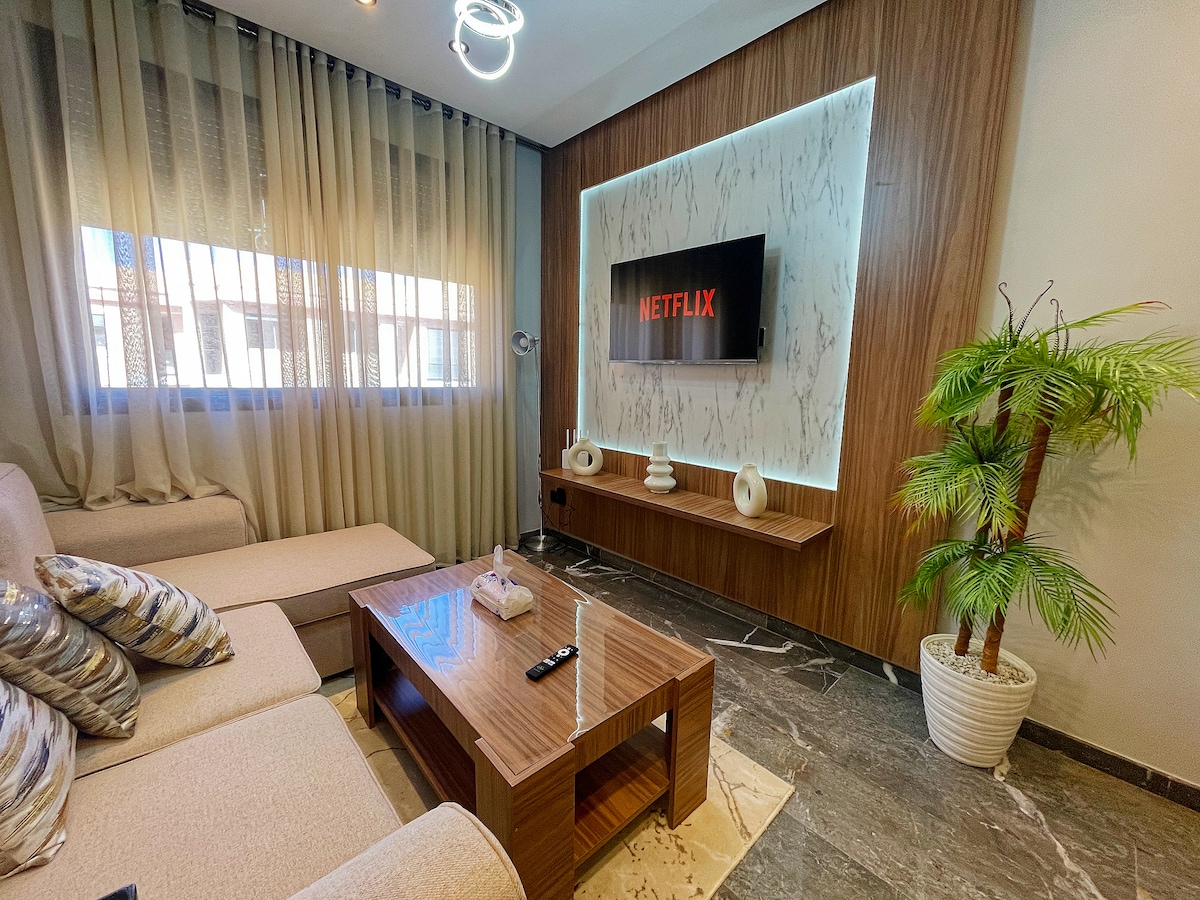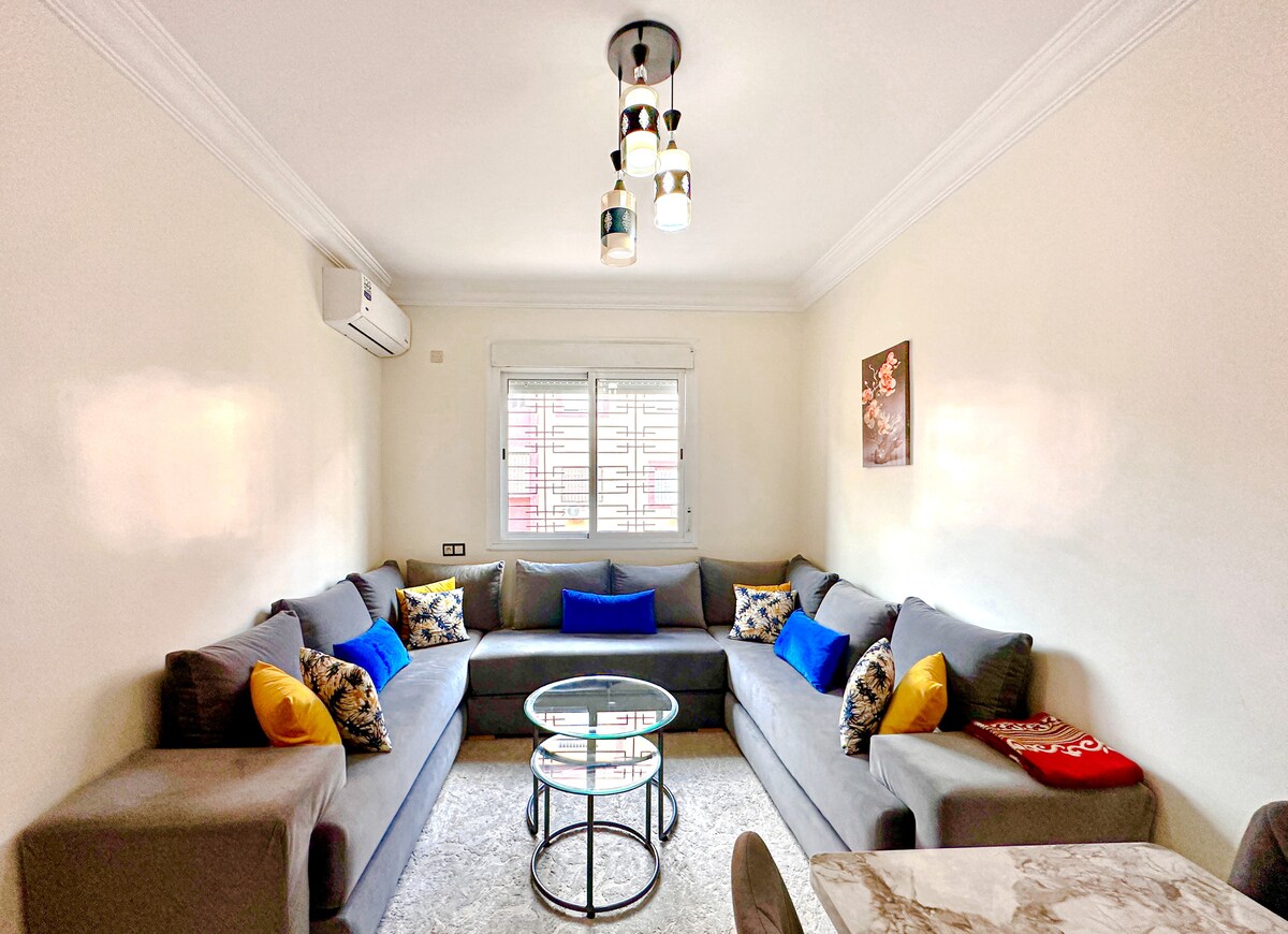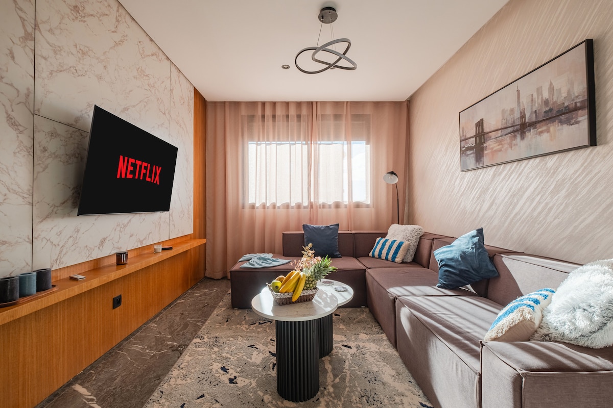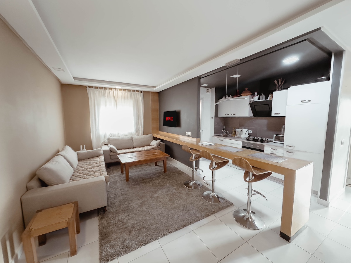 Welcome to your peaceful escape in Marrakech! 🏡 This stylish 2-bedroom smart apartment is a tranquil haven where modern comfort meets the magic of the Red City. 🌅Enjoy mesmerizing sunsets from the balcony. With fast fiber internet, it’s perfect for remote work or streaming 👩💻. 📍Our prime location near Palooza Land gives you easy access to top attractions. It's ideal for solo travelers, couples, or business guests.
