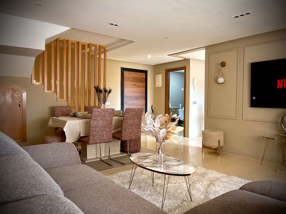 Bienvenue dans votre oasis de luxe, un duplex d’exception qui allie élégance, confort et modernité. Dès l’entrée, vous serez séduit par un design raffiné, des matériaux haut de gamme et une décoration soignée qui créent une ambiance chaleureuse et sophistiquée. Que vous soyez en voyage d’affaires ou en séjour familial, ce duplex d’exception est le choix idéal pour vivre une expérience inoubliable.