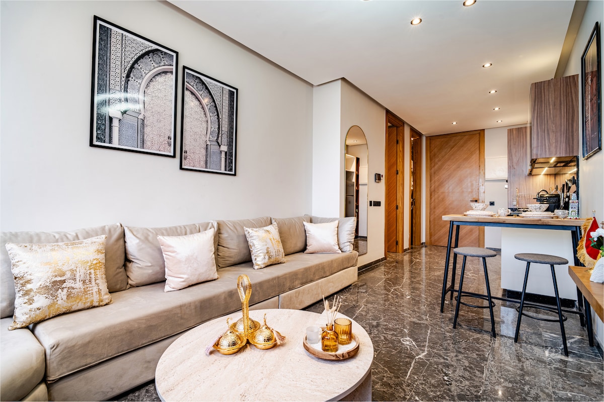 Welcome to your peaceful escape in Marrakech! 🏡 This stylish 2-bedroom smart apartment is a tranquil haven where modern comfort meets the magic of the Red City. 🌅Enjoy mesmerizing sunsets from the balcony. With fast fiber internet, it’s perfect for remote work or streaming 👩💻. 📍Our prime location near Palooza Land gives you easy access to top attractions. It's ideal for solo travelers, couples, or business guests.