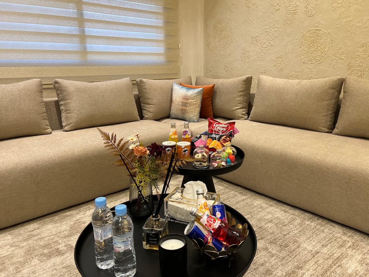 Situé dans le quartier Charaf, à 5 min du Supermarché Marjane route de Casablanca, cet appartement au 3ème étage de la résidence sécurisée Elite Garden offre 1 chambre, 1 salle de bain, un salon et une cuisine équipée. Proche du café ADRESSE, il allie modernité et confort. Idéal pour voyageurs et escapades. Wi-Fi, produits de soin haut de gamme et check-in personnalisé inclus. Séjournez dans un cadre paisible et bien connecté.