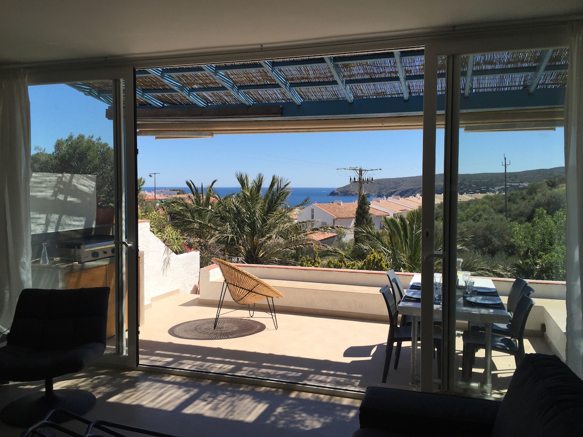 宽敞的住宿,可欣赏Cerbère的海景,靠近村庄