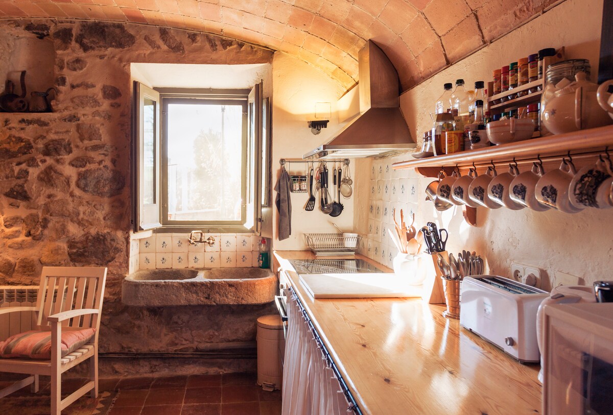 Es una Masía del Siglo XVII construida en piedra original de la zona, suelos de barro cocido en hornos de leña y vigas de madera autóctona. Los grandes ventanales practicables en forma de arcadas, que se encuentran a lo largo de toda la fachada, ofrecen magníficas vistas a los campos de cultivo de la propiedad y permiten una comunicación total con la naturaleza exterior, los jardines y la piscina