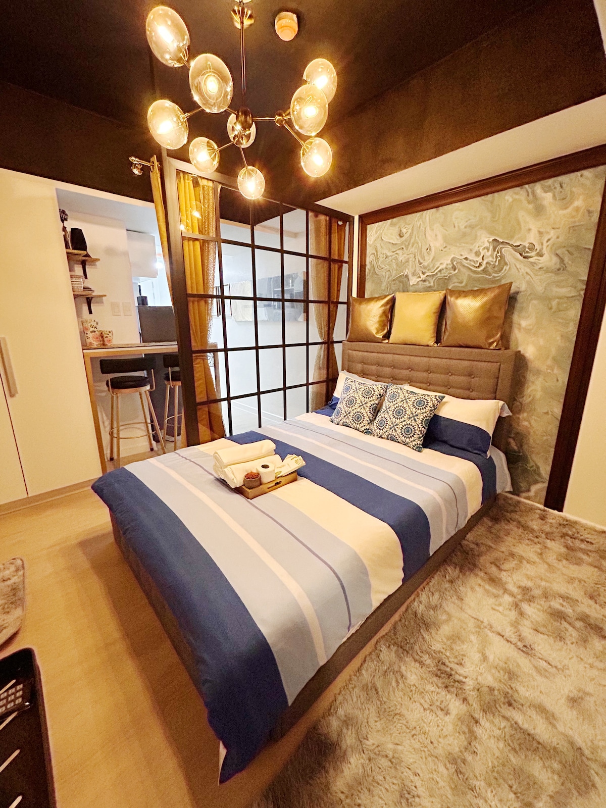 Experience a relaxing stay in this big, spacious and stylish 1-bedroom unit at Kandi Palace ( 8th floor ). Complete kitchen utensils Upgraded Big 2 TV Refrigerator Microwave oven Big Sofa Office table and chair Dining table and chairs Balcony table and chairs Cable, stream tv Fast WIFI White and blue lights Shower heater Water heater Fully Furnished Free Parking Area Rooftop access: Swimming pool Restaurant Closer to the action yet still quiet, perfect to relax 🌸