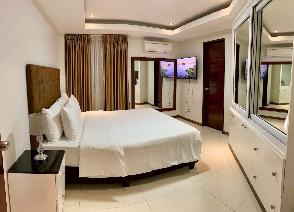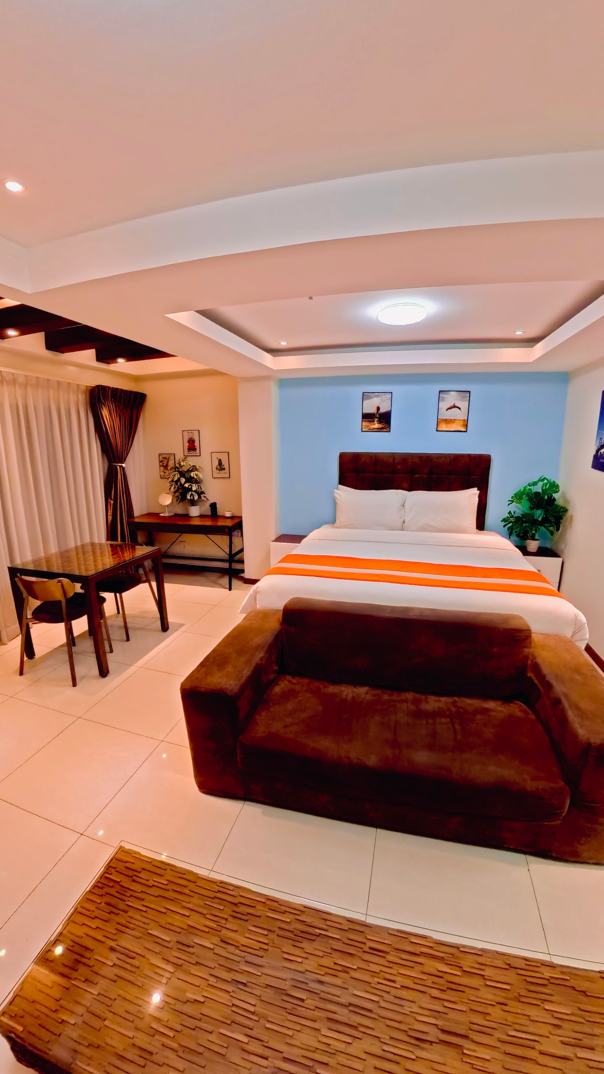 At 43㎡ and featuring a luxurious king-size bed with hotel quality linen, this studio is spacious. La Grande residence is a resort style complex that allows for relaxation with many amenities, whilst still having great wifi and comfort should you need to work. Ideally located ,in a quieter location, between the two entertainment districts of Fields Avenue and Korea Town, there are good restaurants nearby, including on site. People who experience a stay at La Grande generally return.